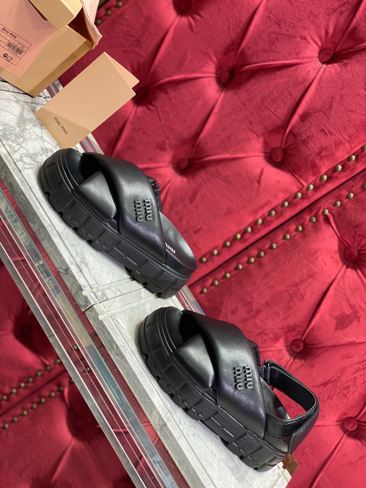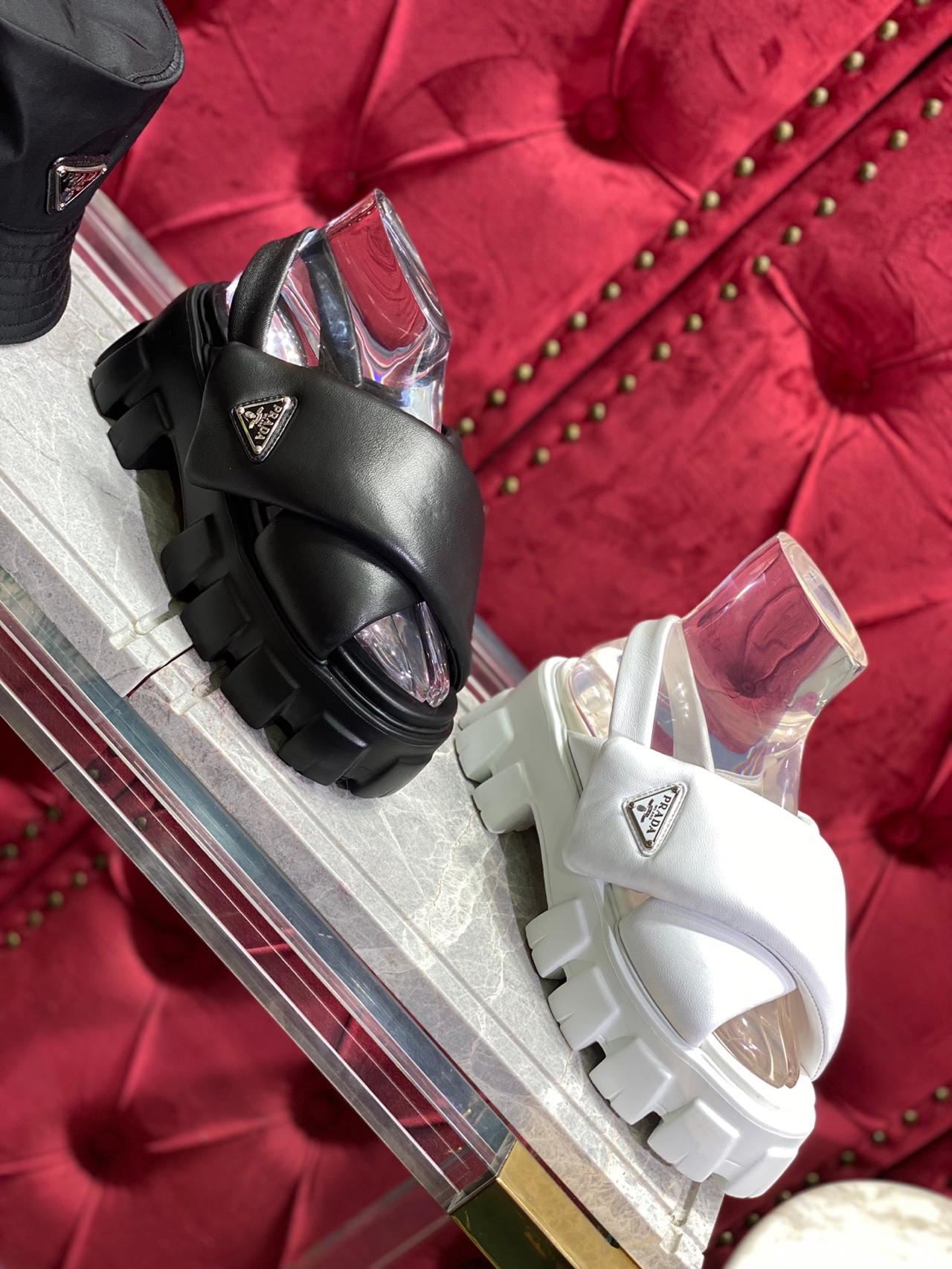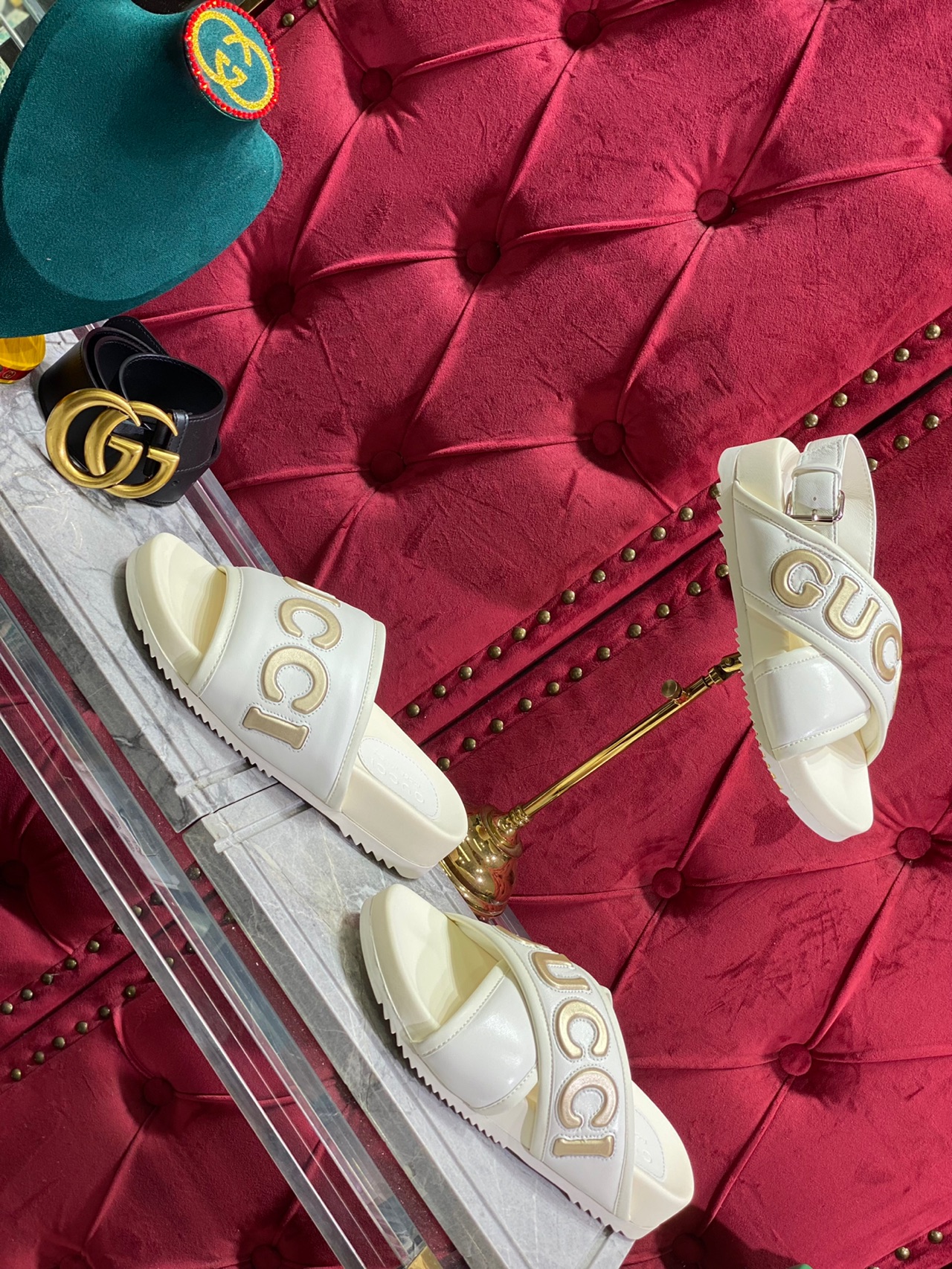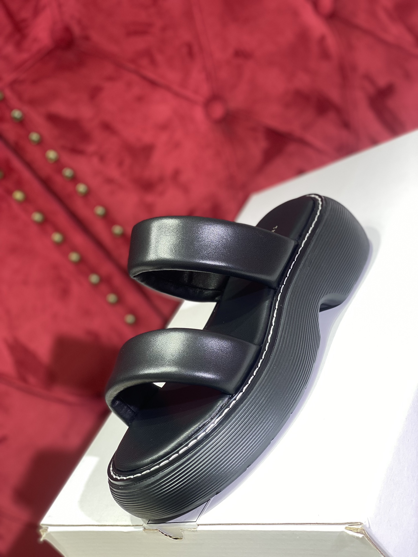 P齿轮厚底交叉带面包凉鞋、拖鞋