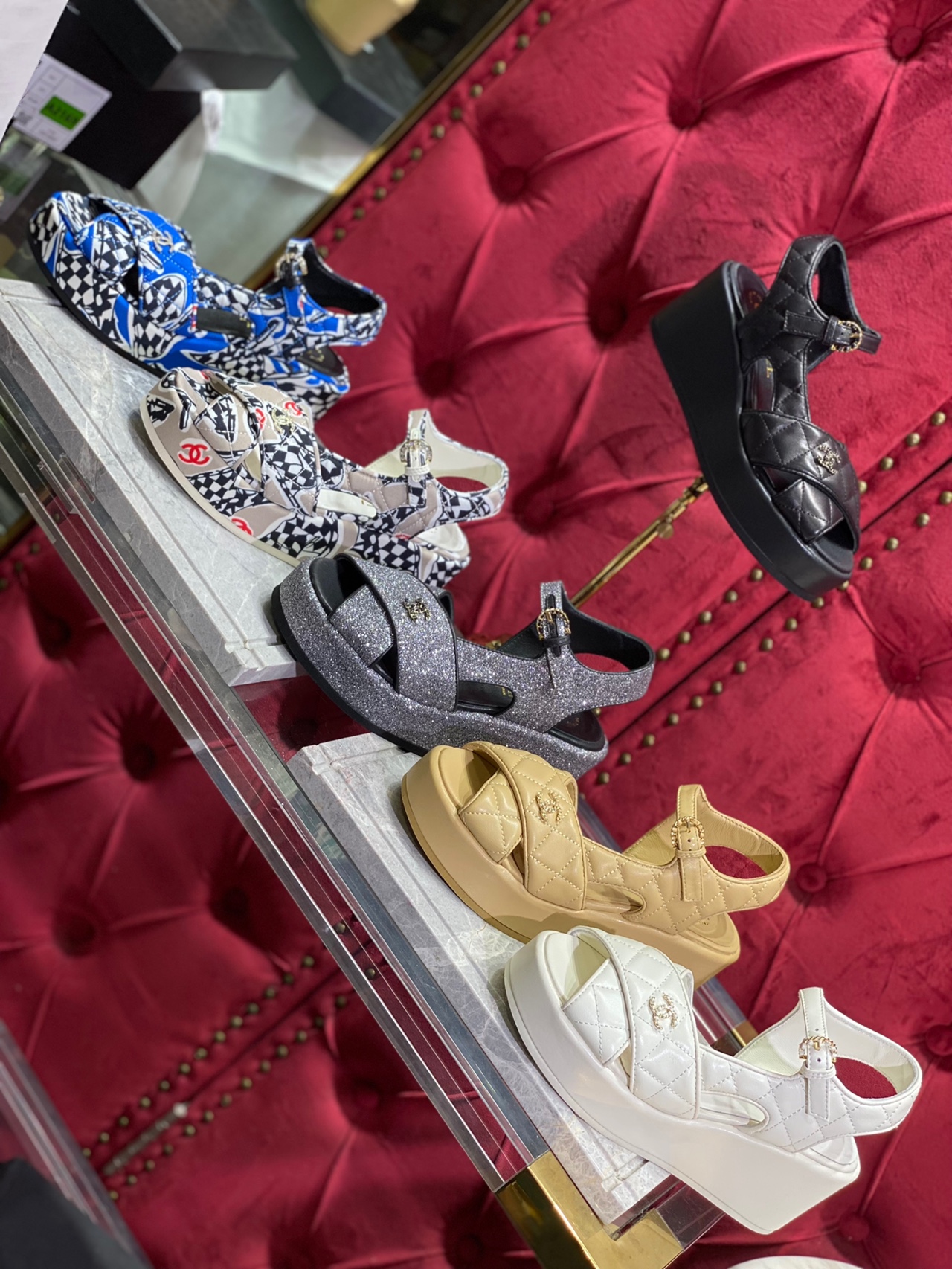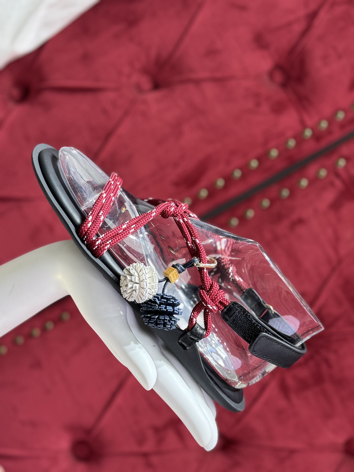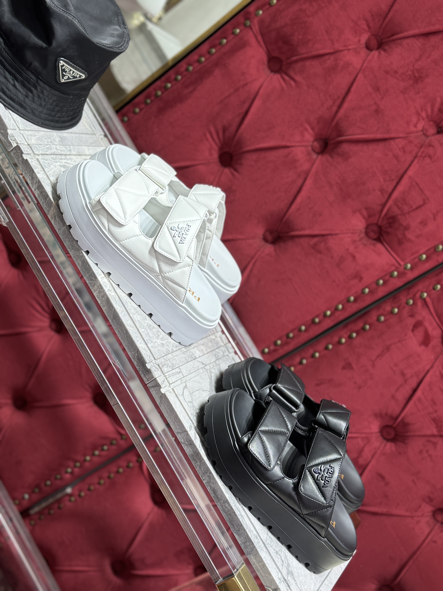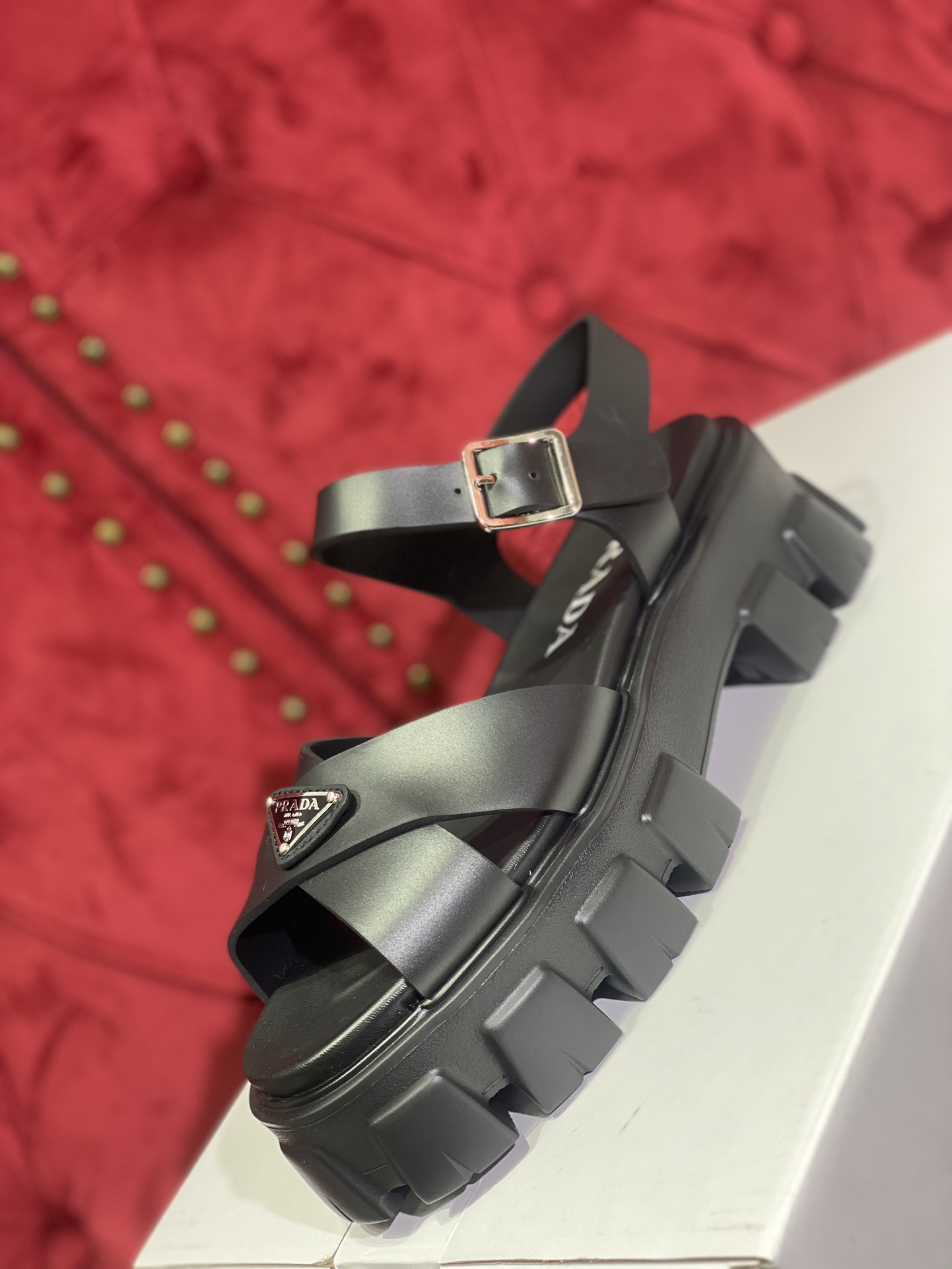 P齿轮厚底交叉带面包凉鞋、拖鞋