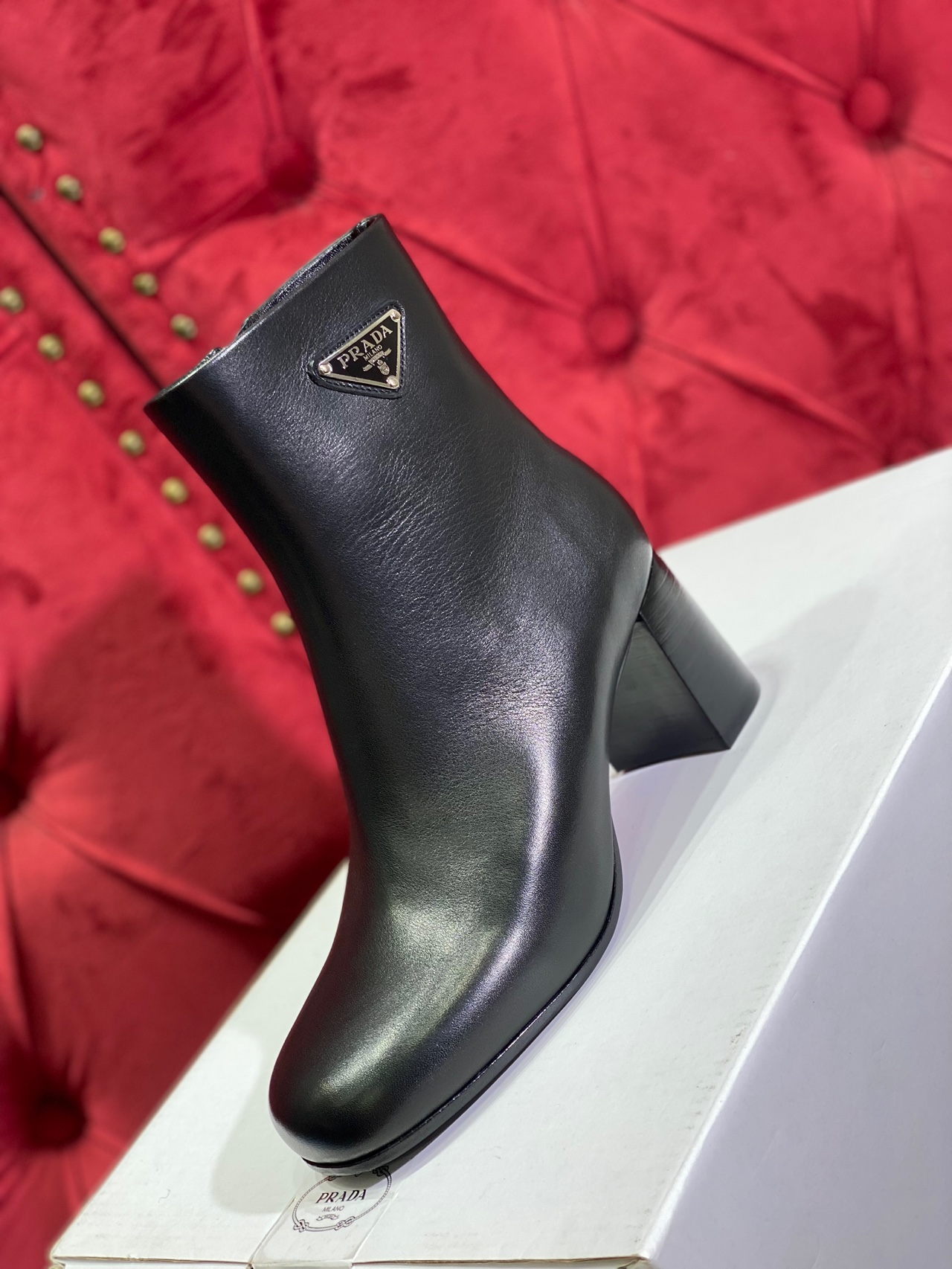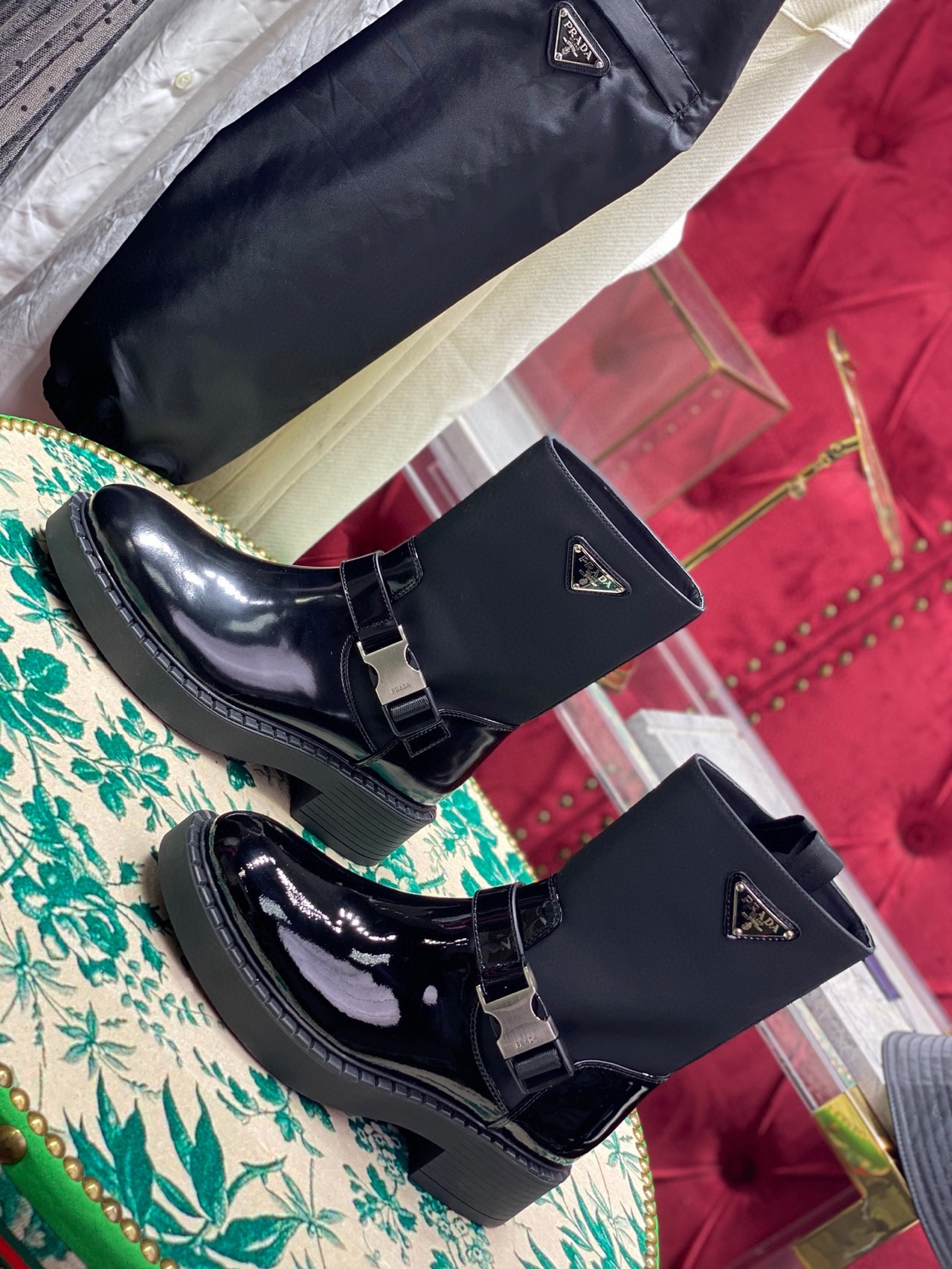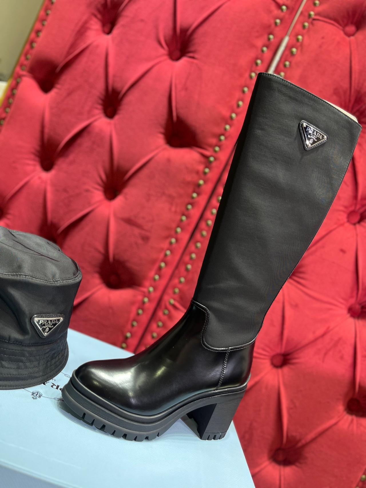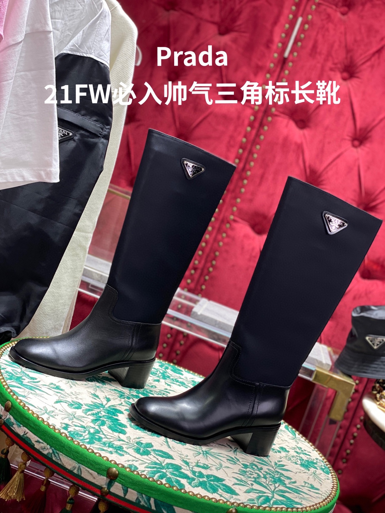 P23FW三角标尼龙靴面粗跟廋腿神器长靴