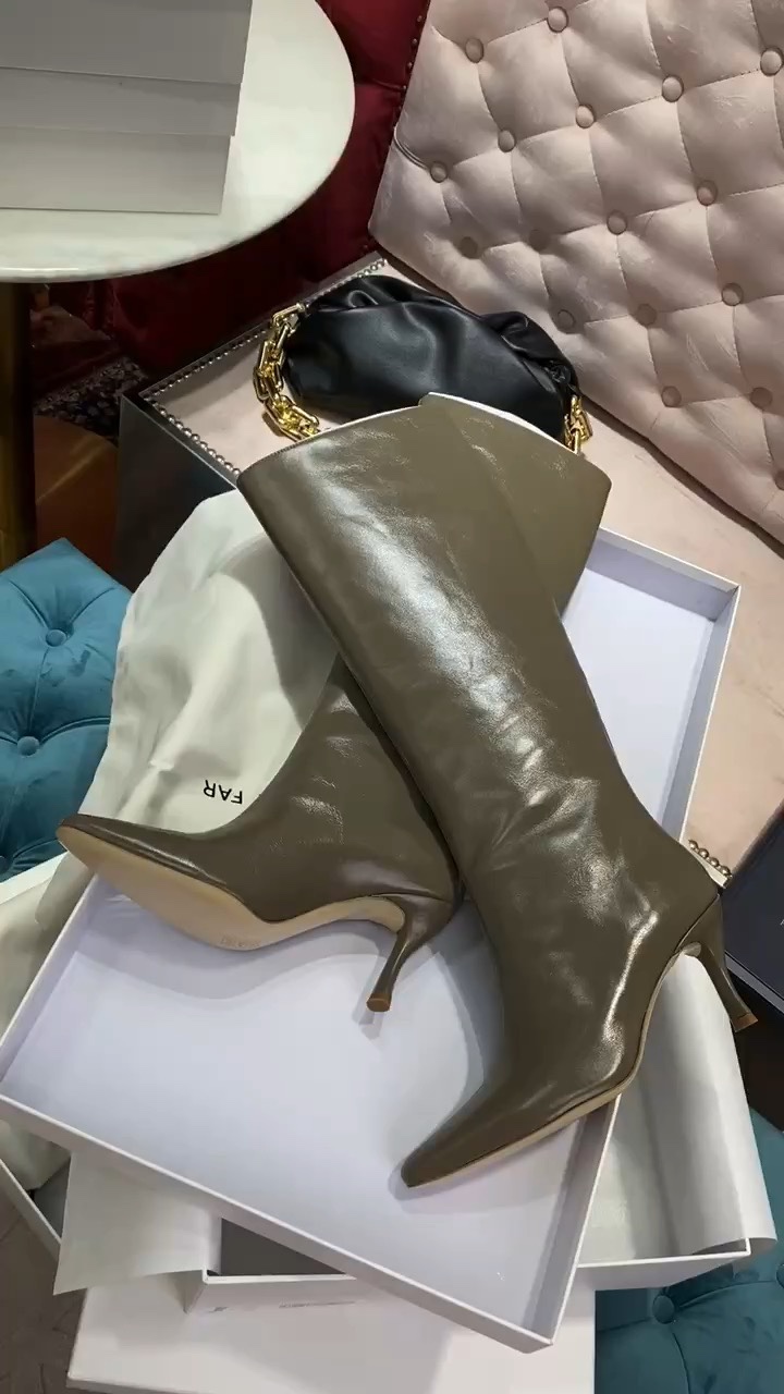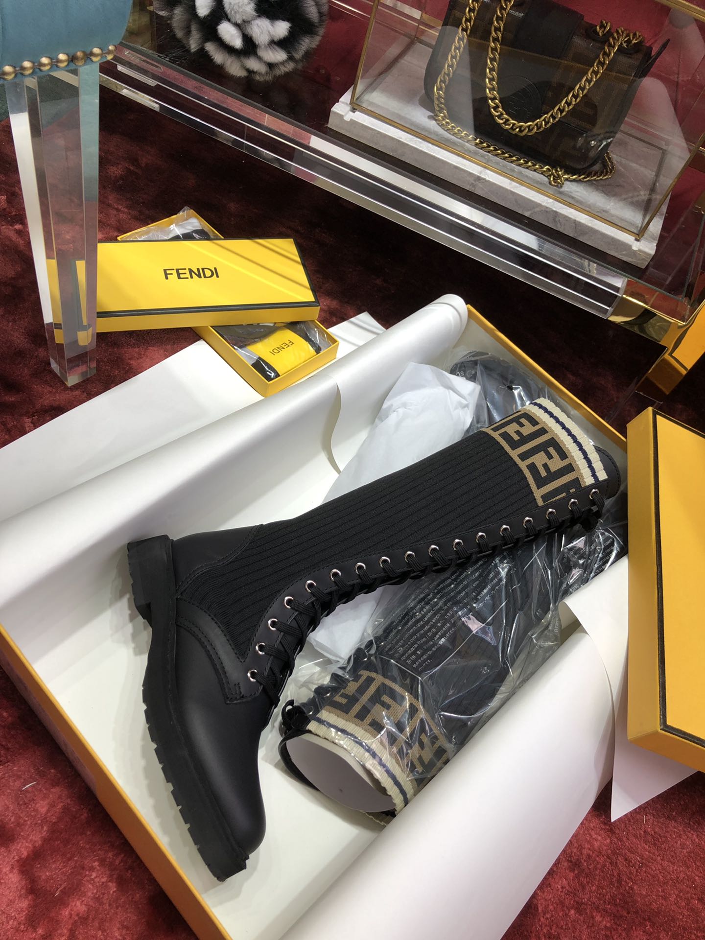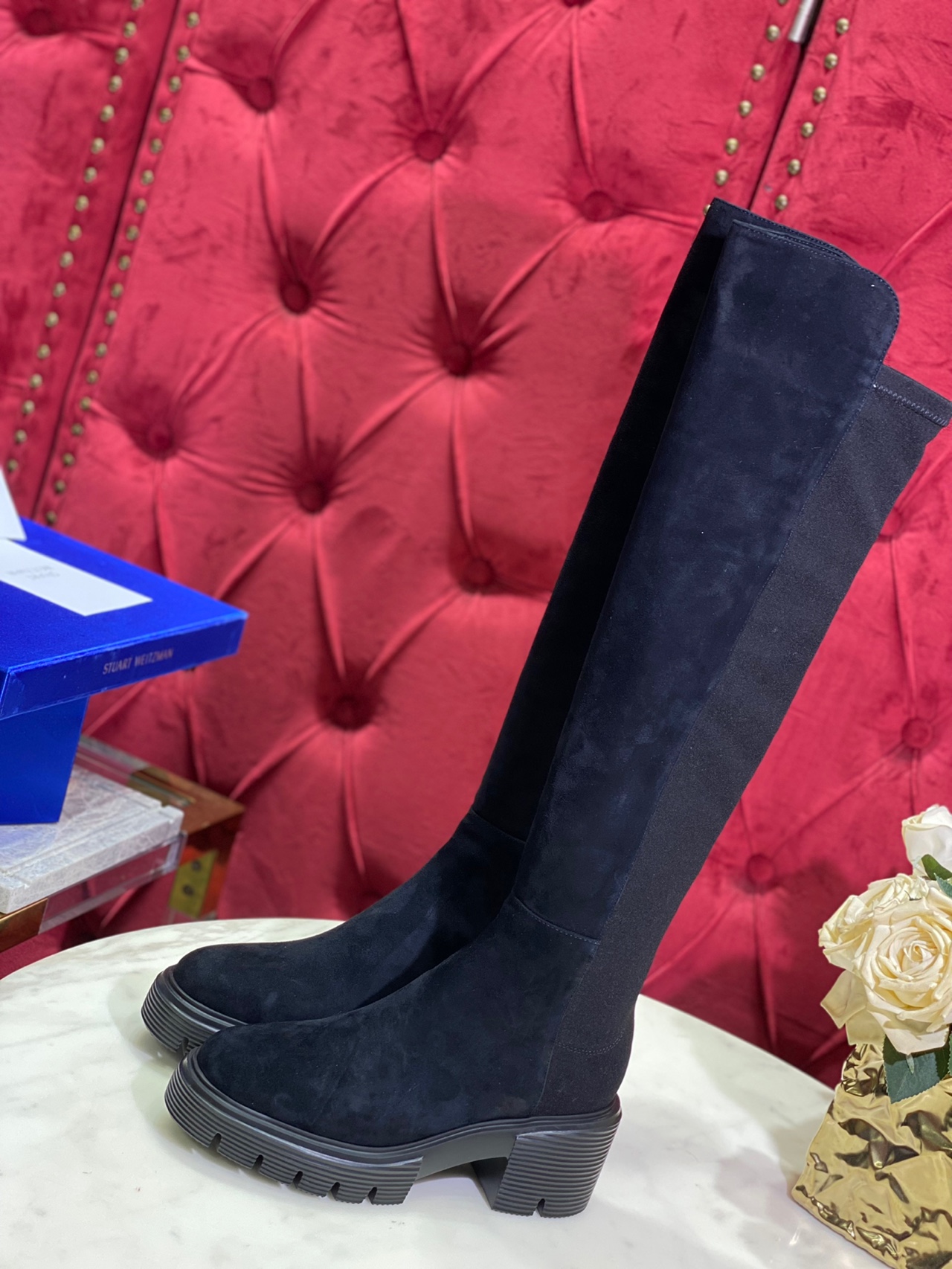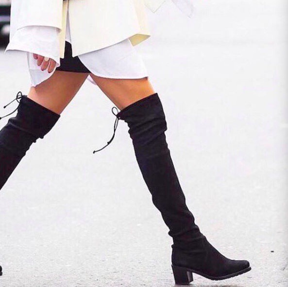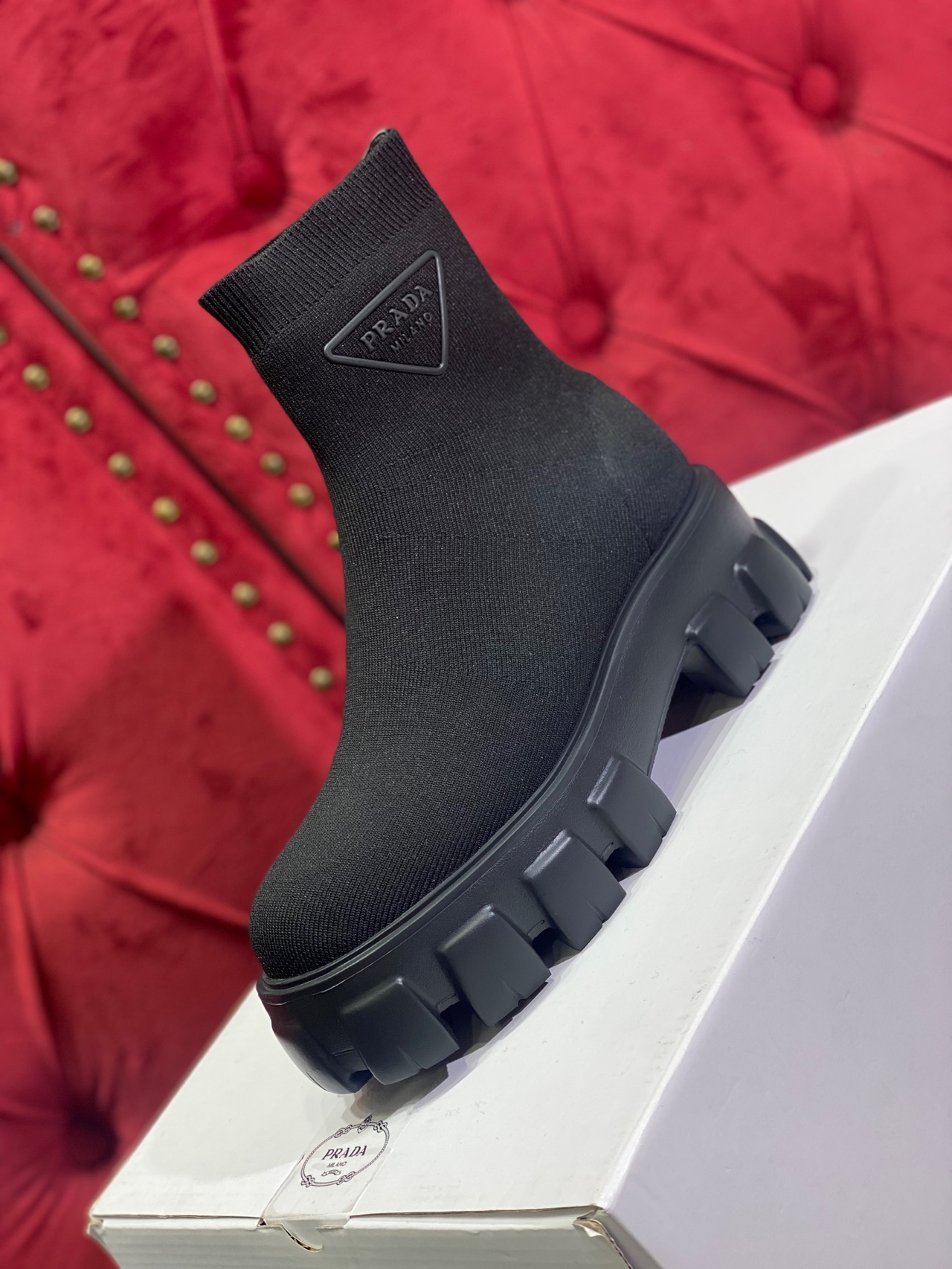 P23FW三角标尼龙靴面粗跟廋腿神器长靴