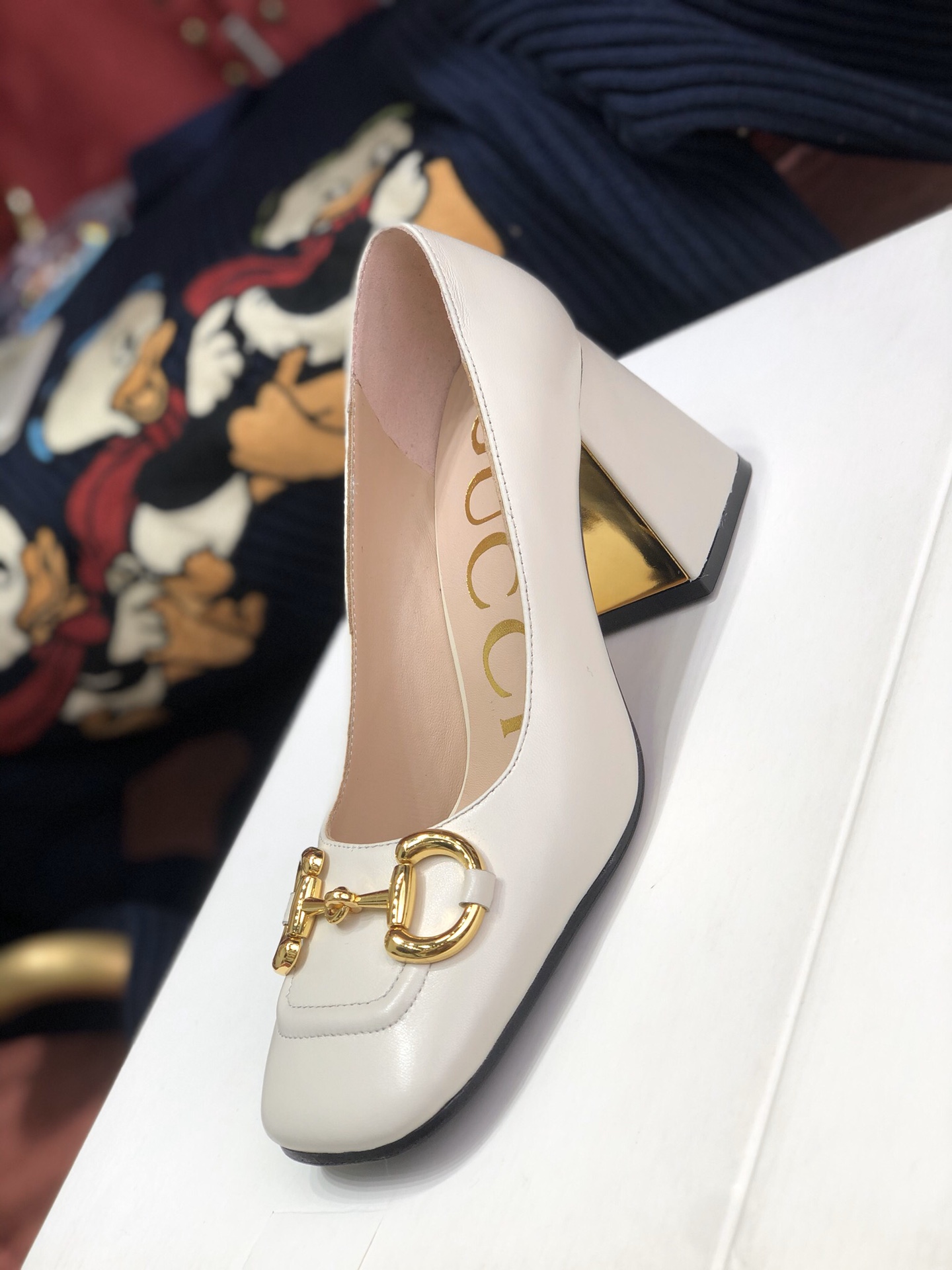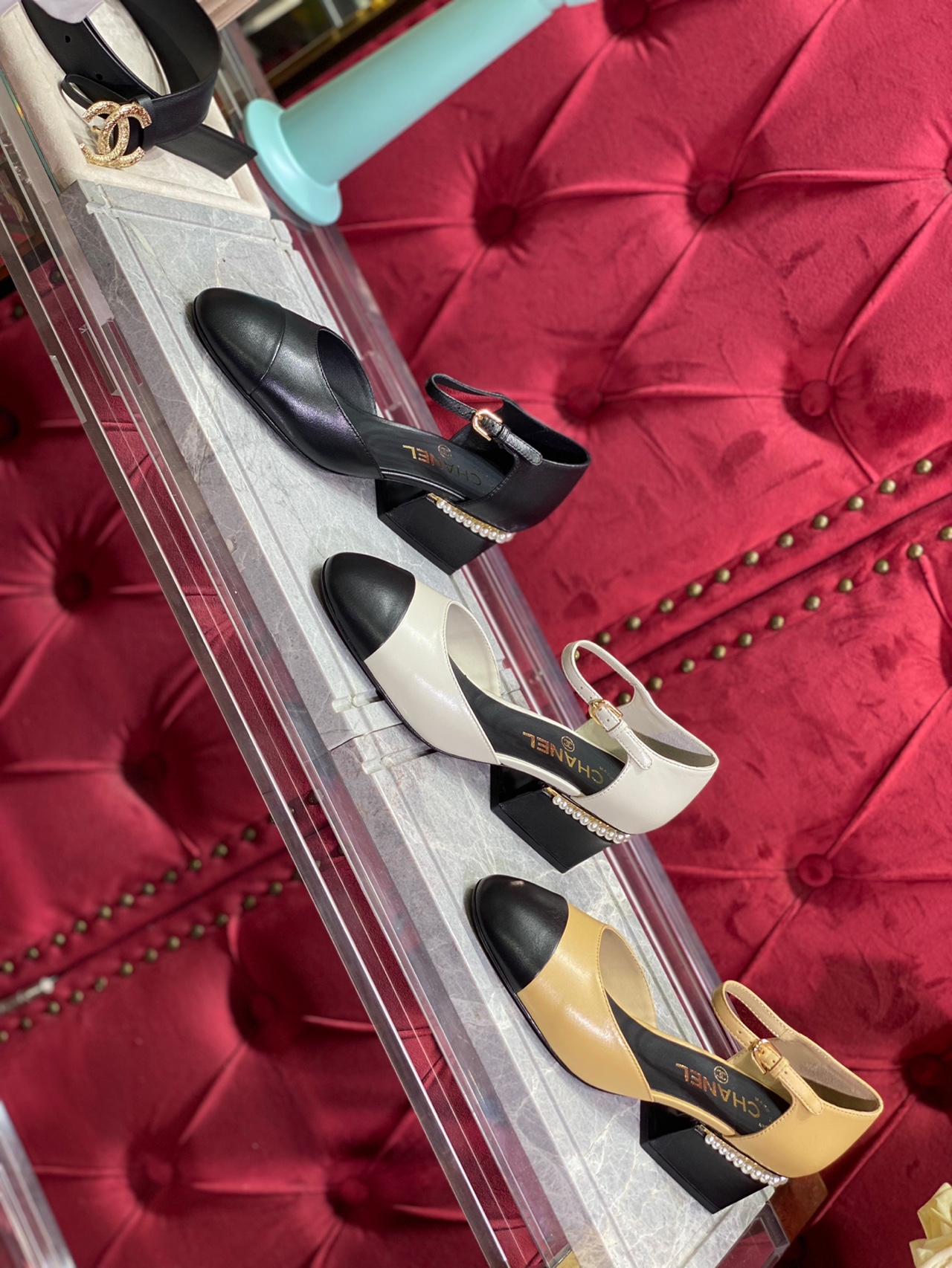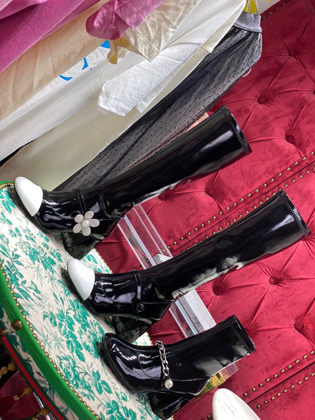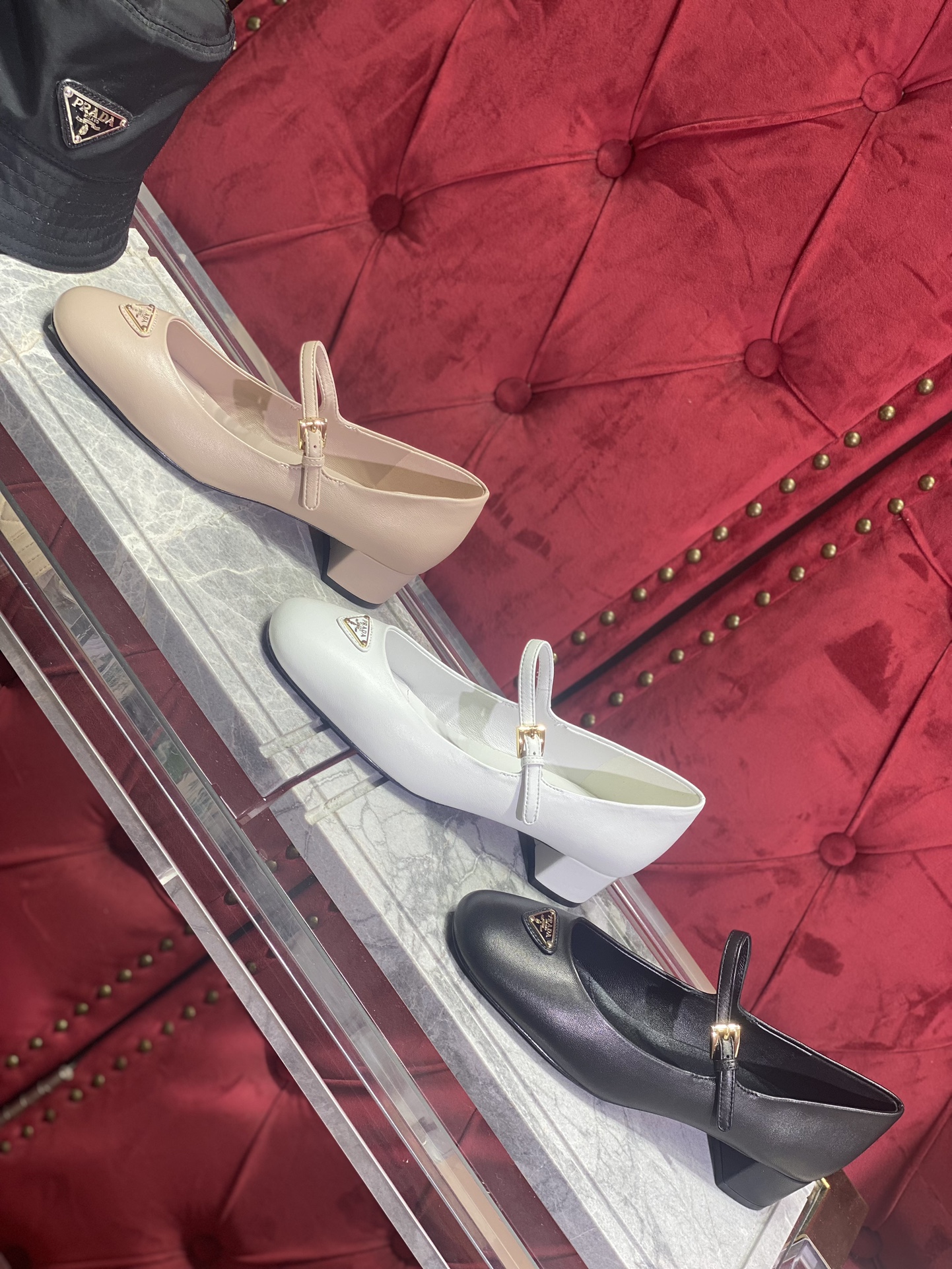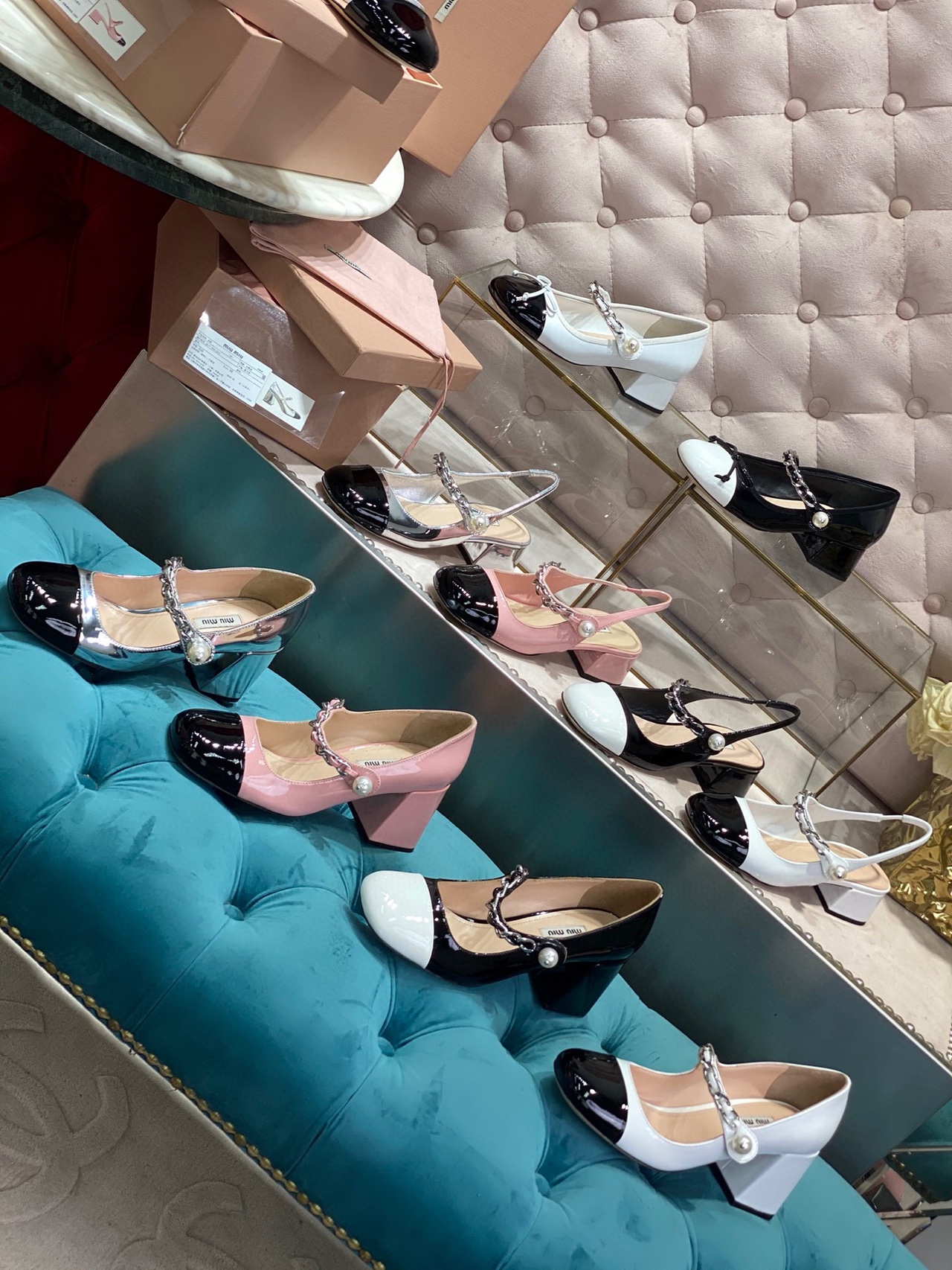 Miu经典珍珠扣玛丽珍粗跟单鞋