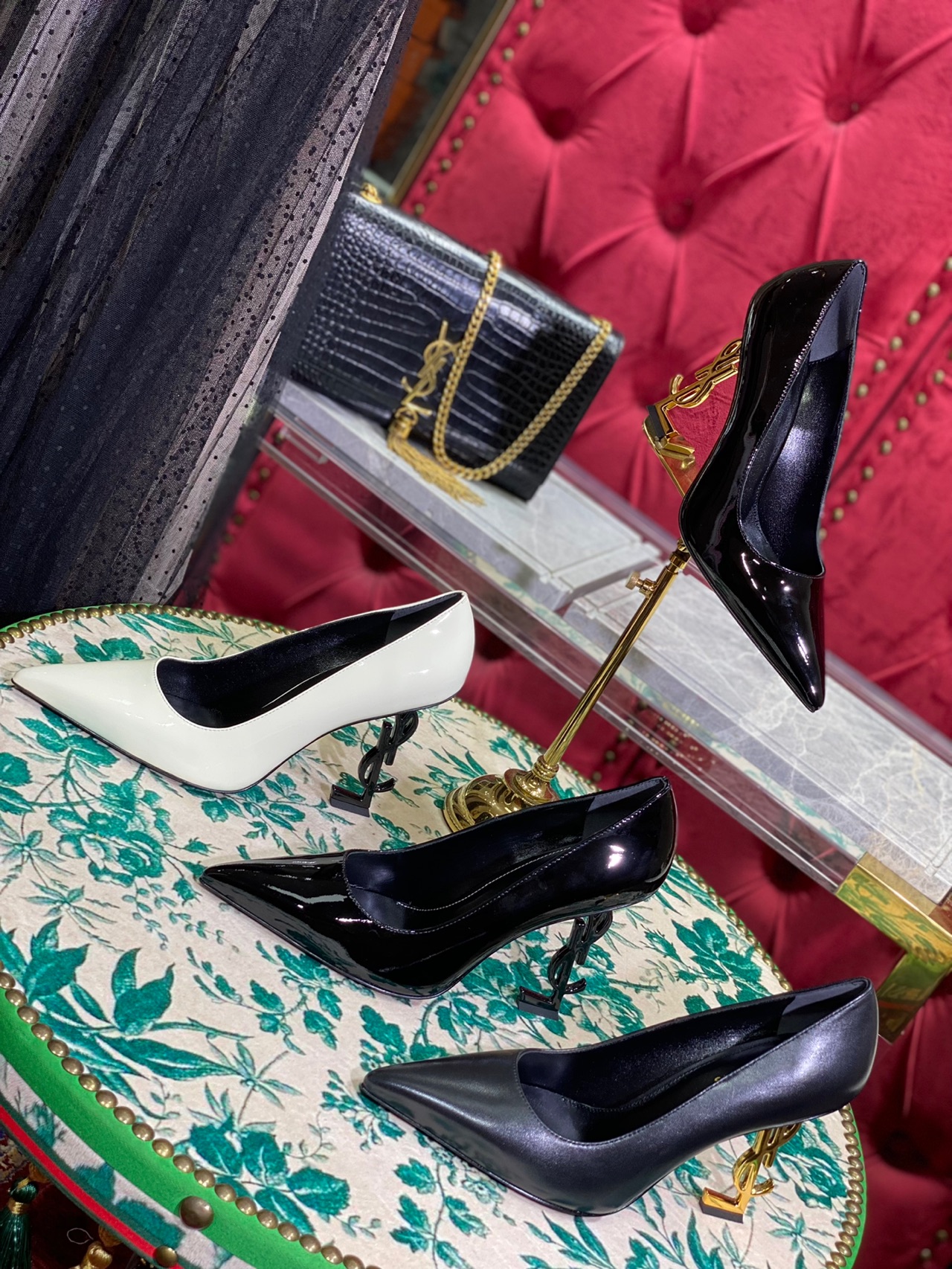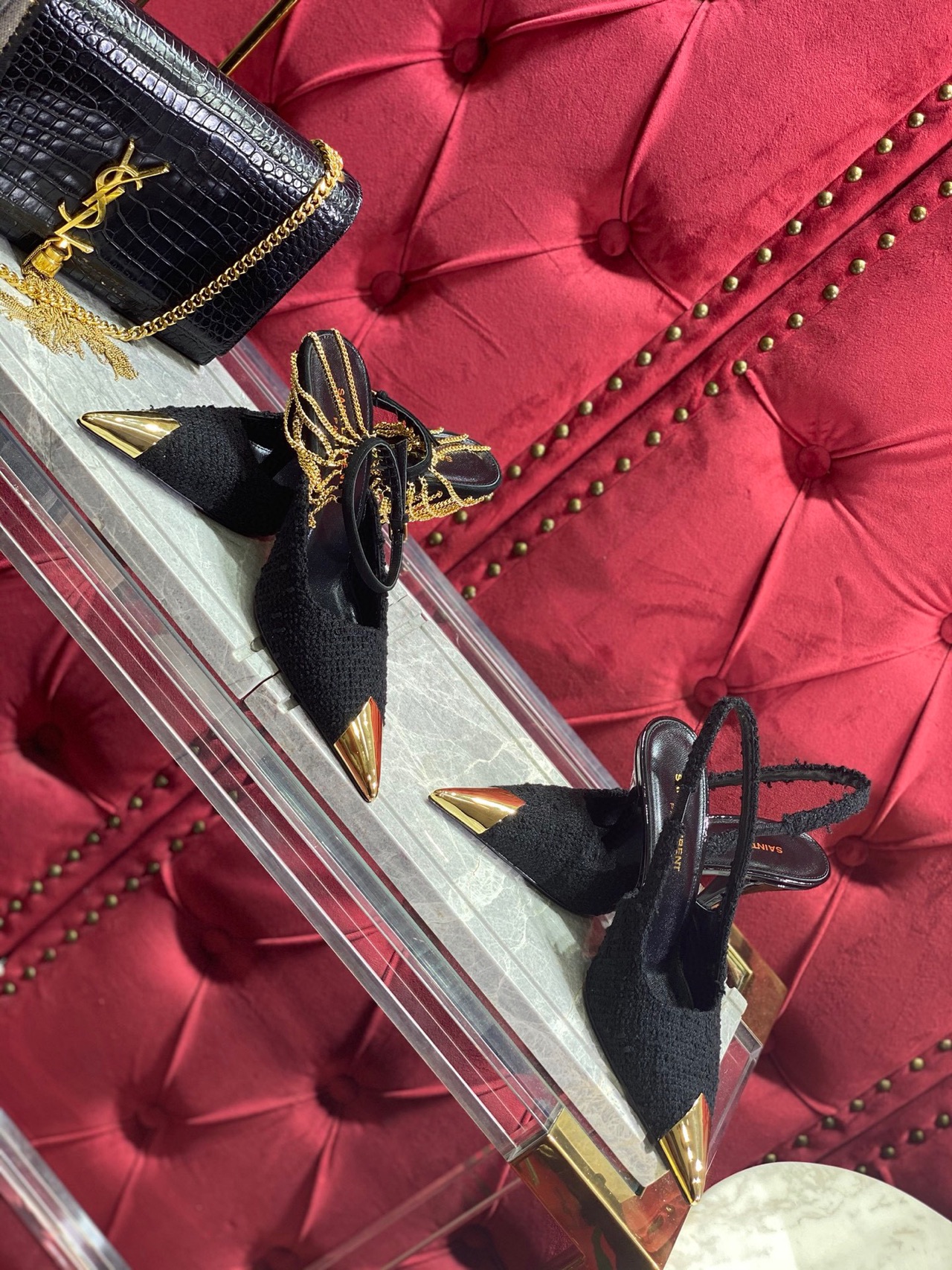 YSL 经典斩男气场十足小金条金属跟后空高跟鞋