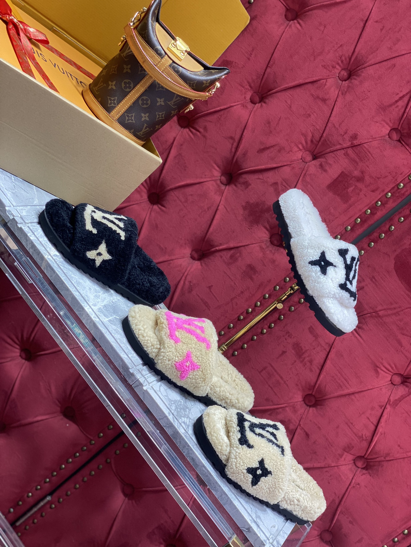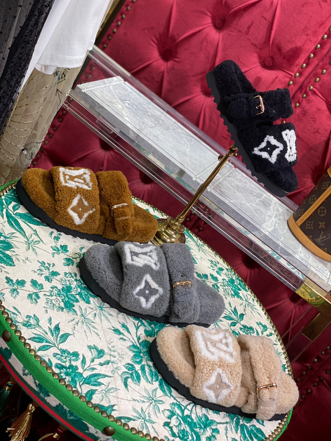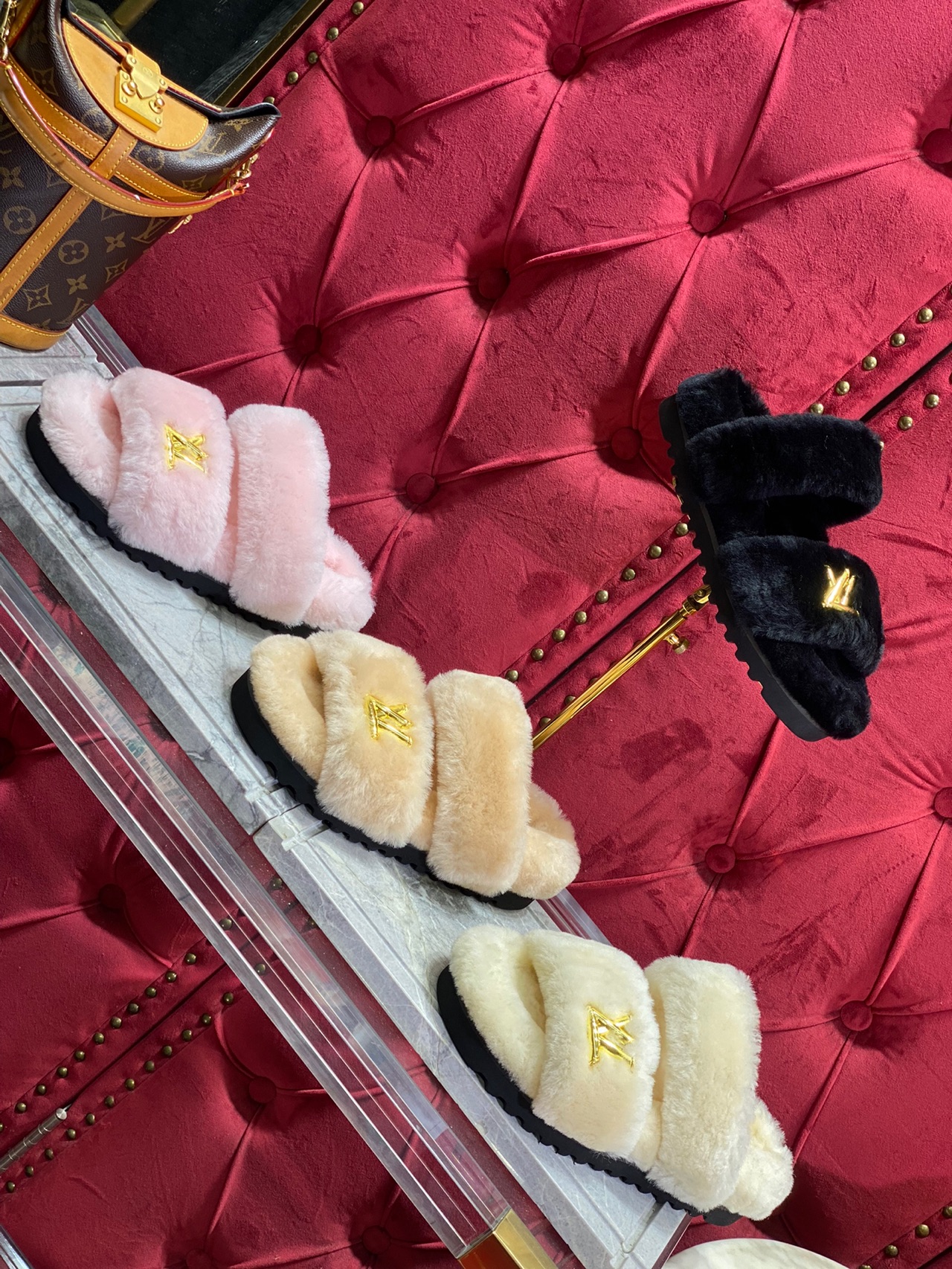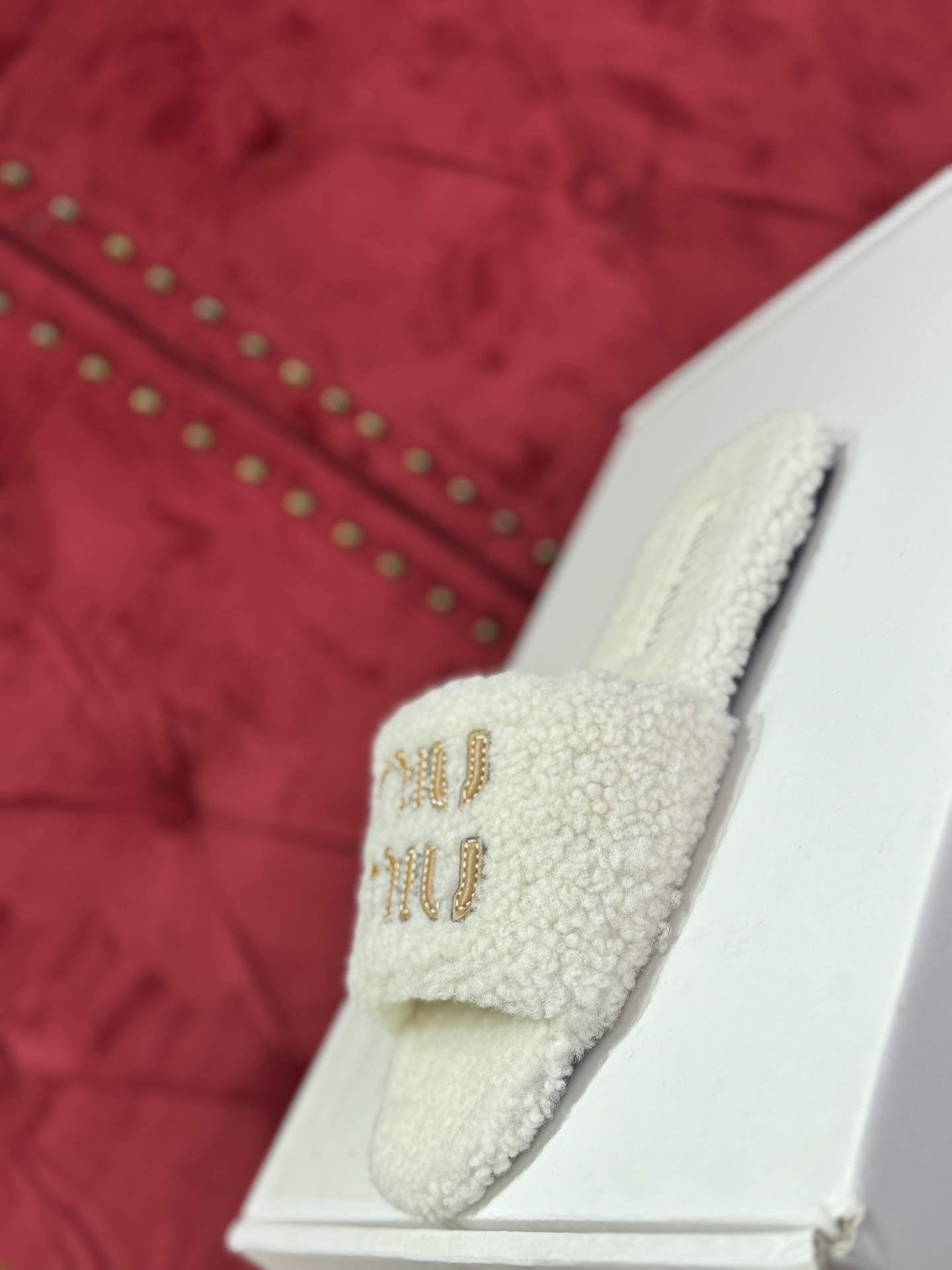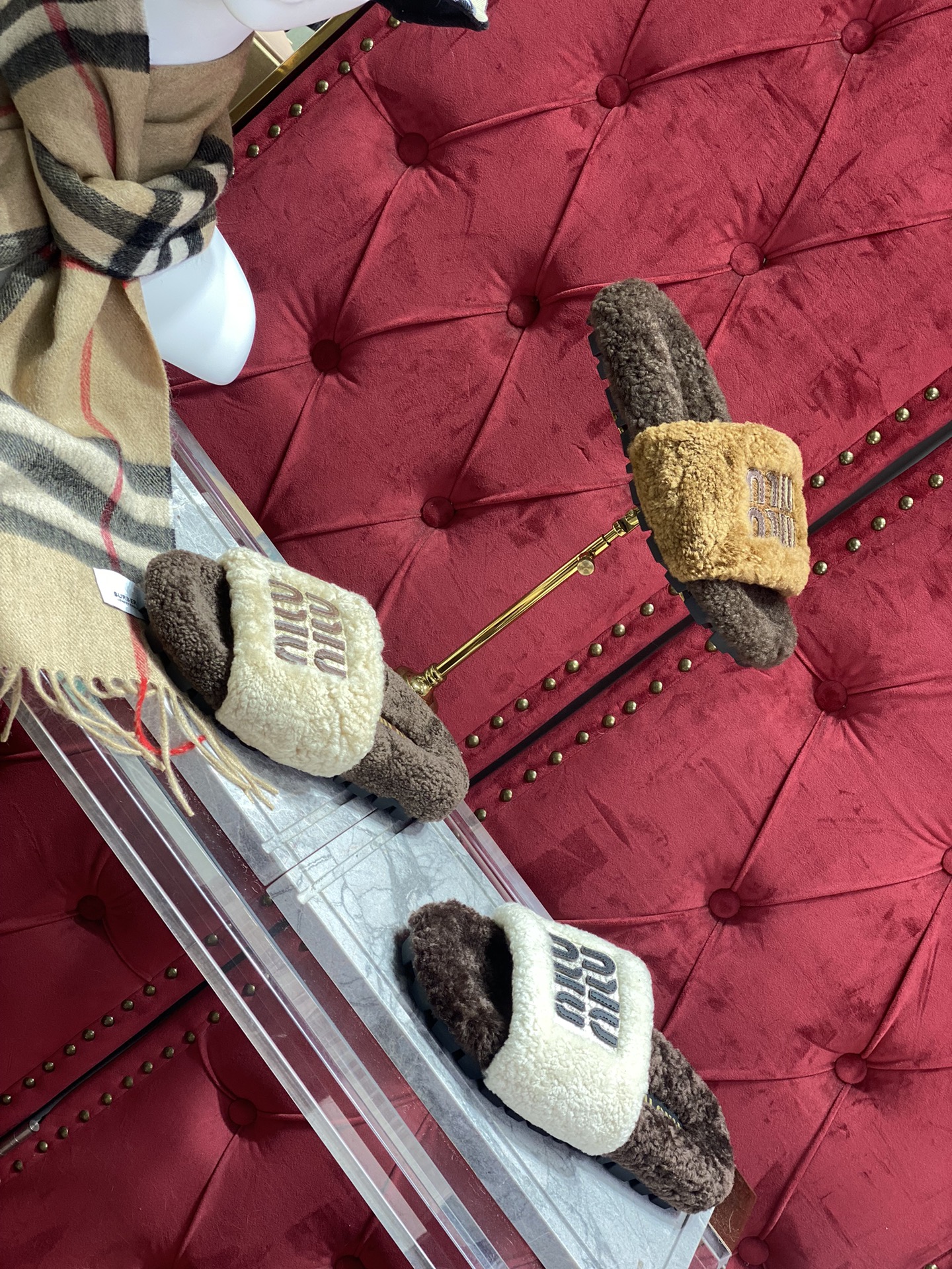 B经典百搭刺绣标增高厚底羊毛拖鞋