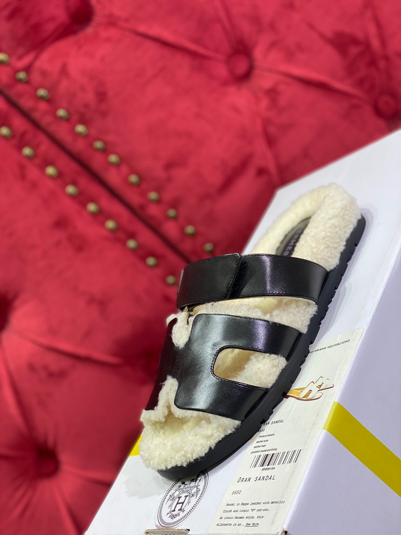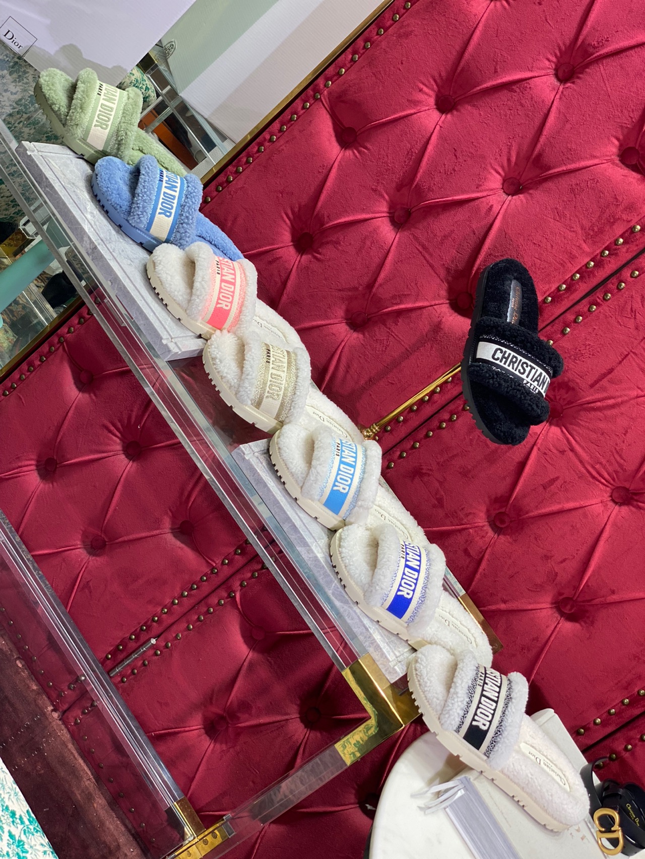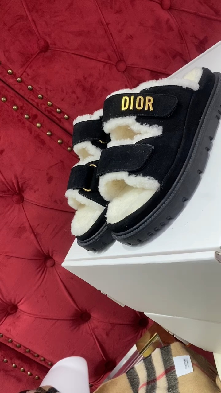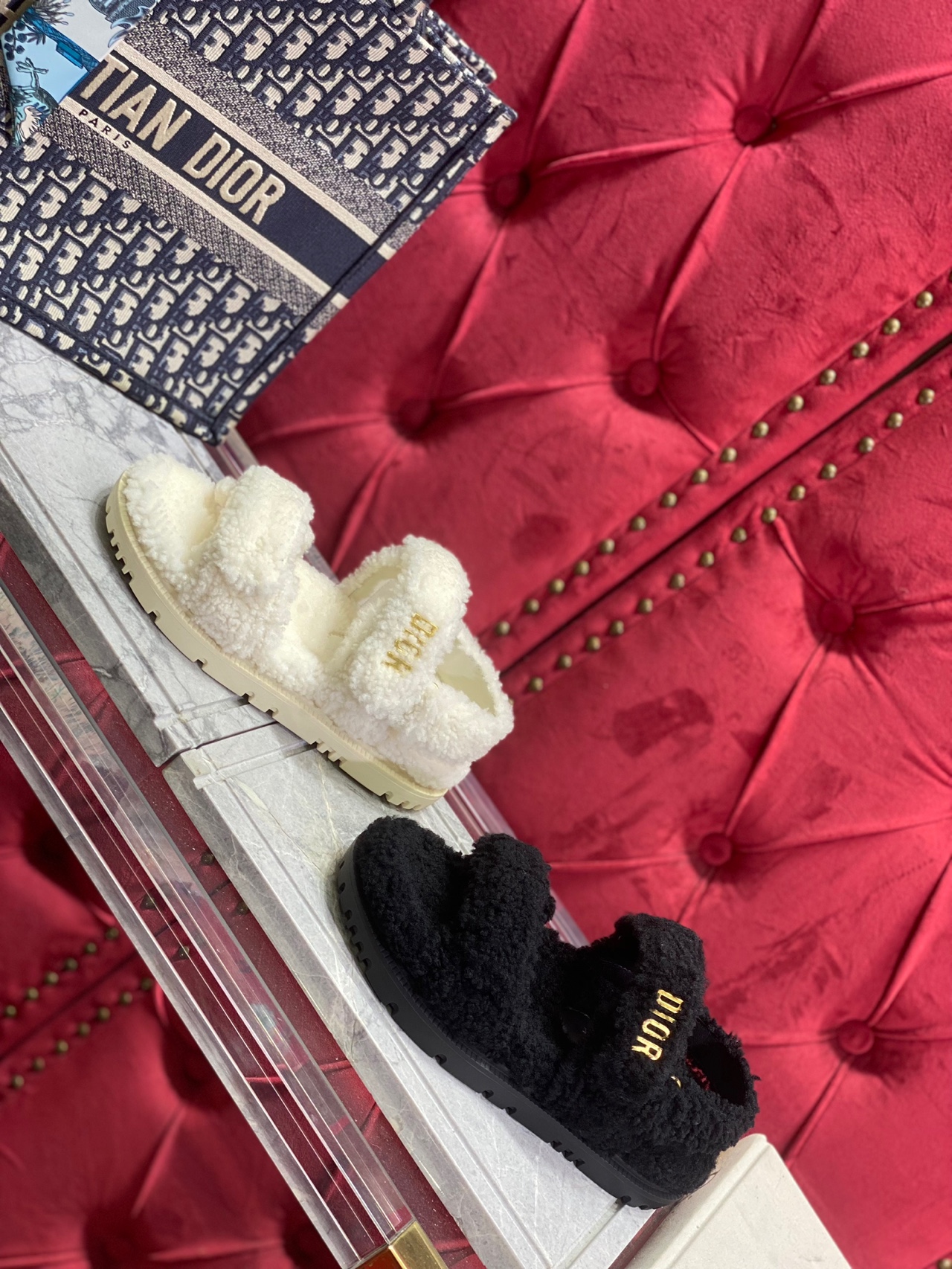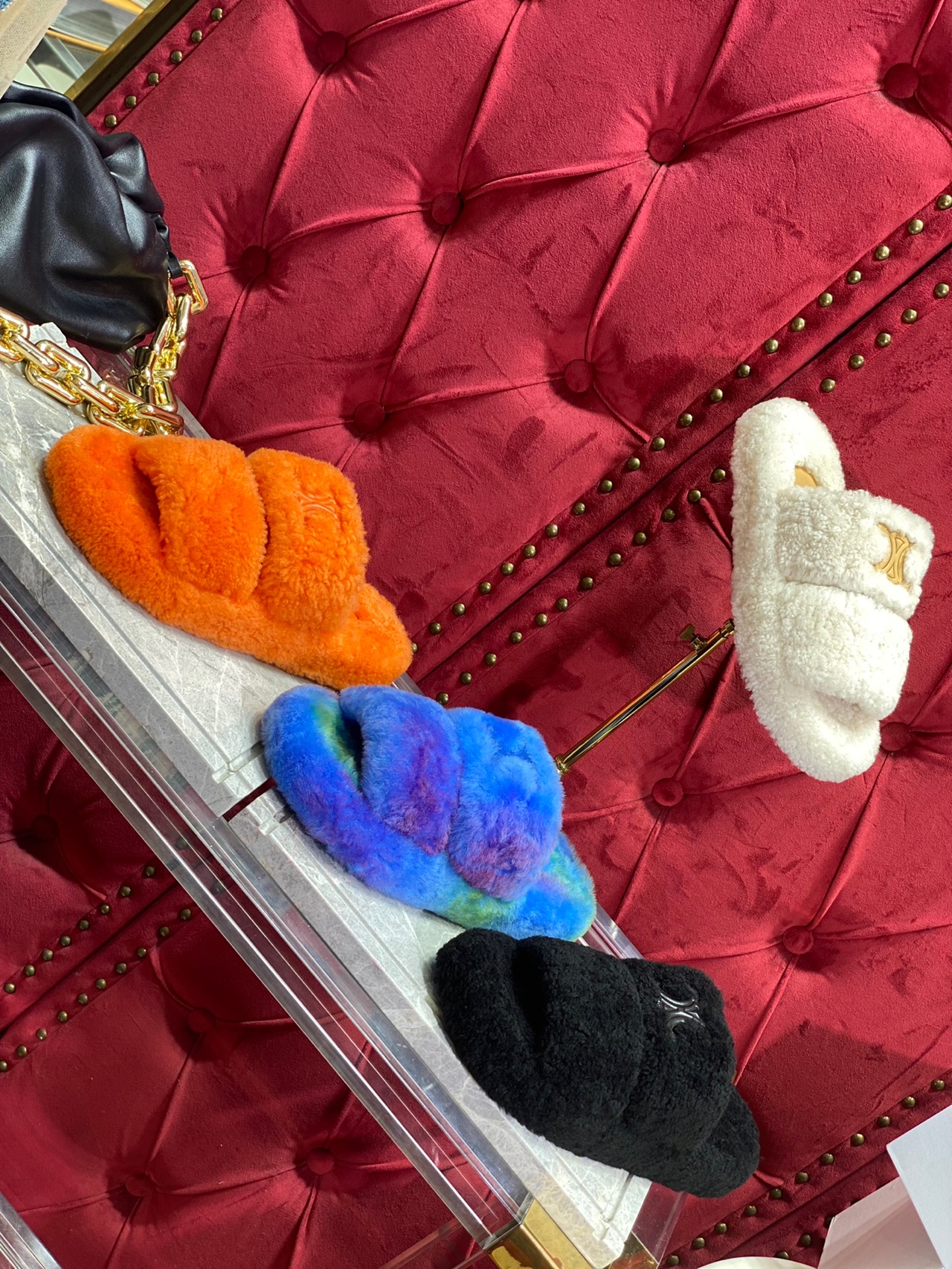 B经典百搭刺绣标增高厚底羊毛拖鞋
