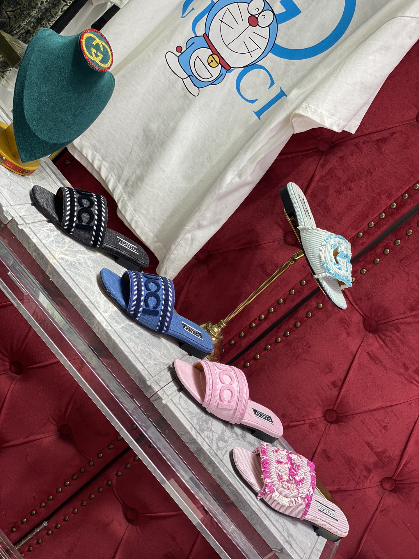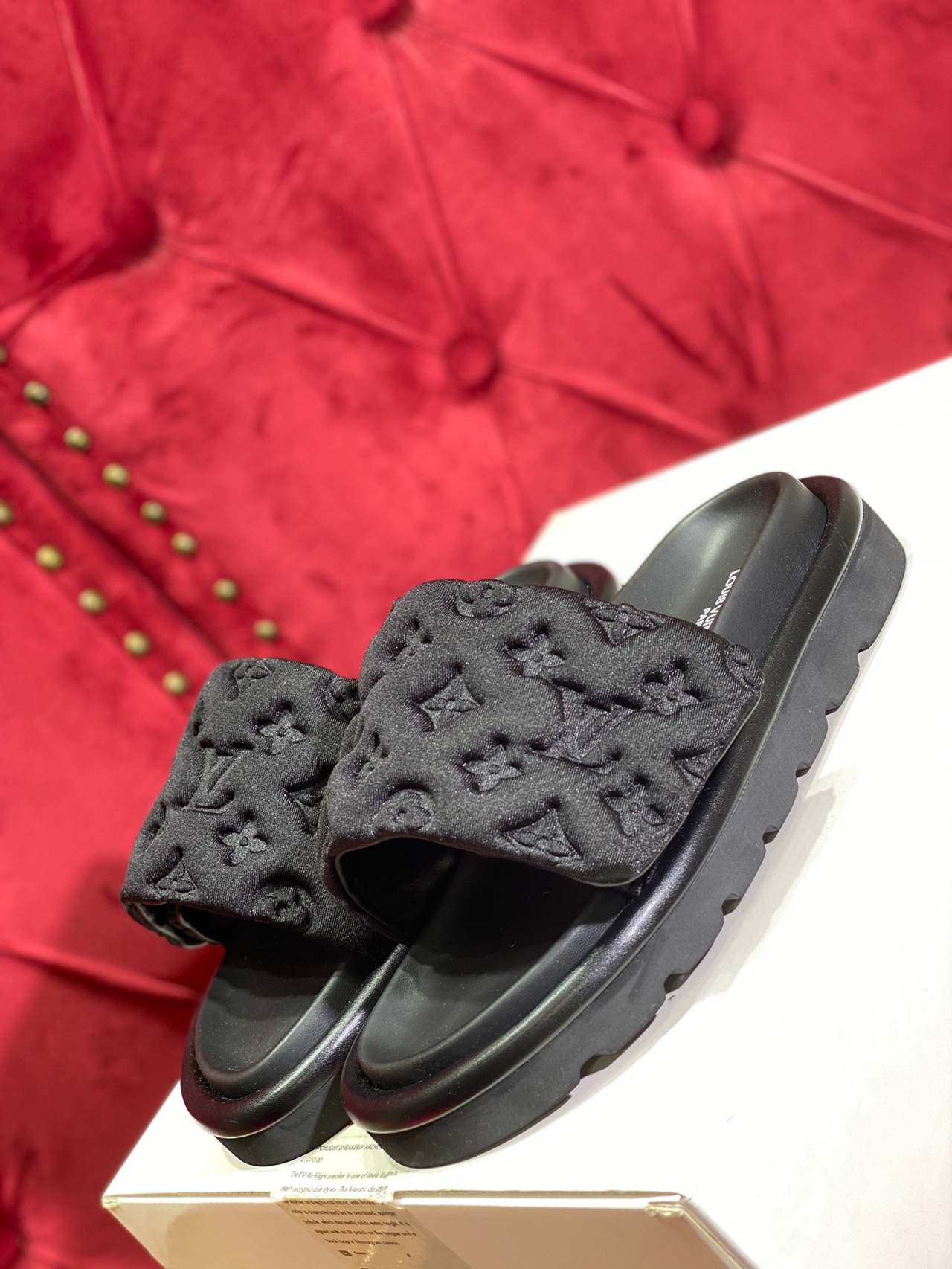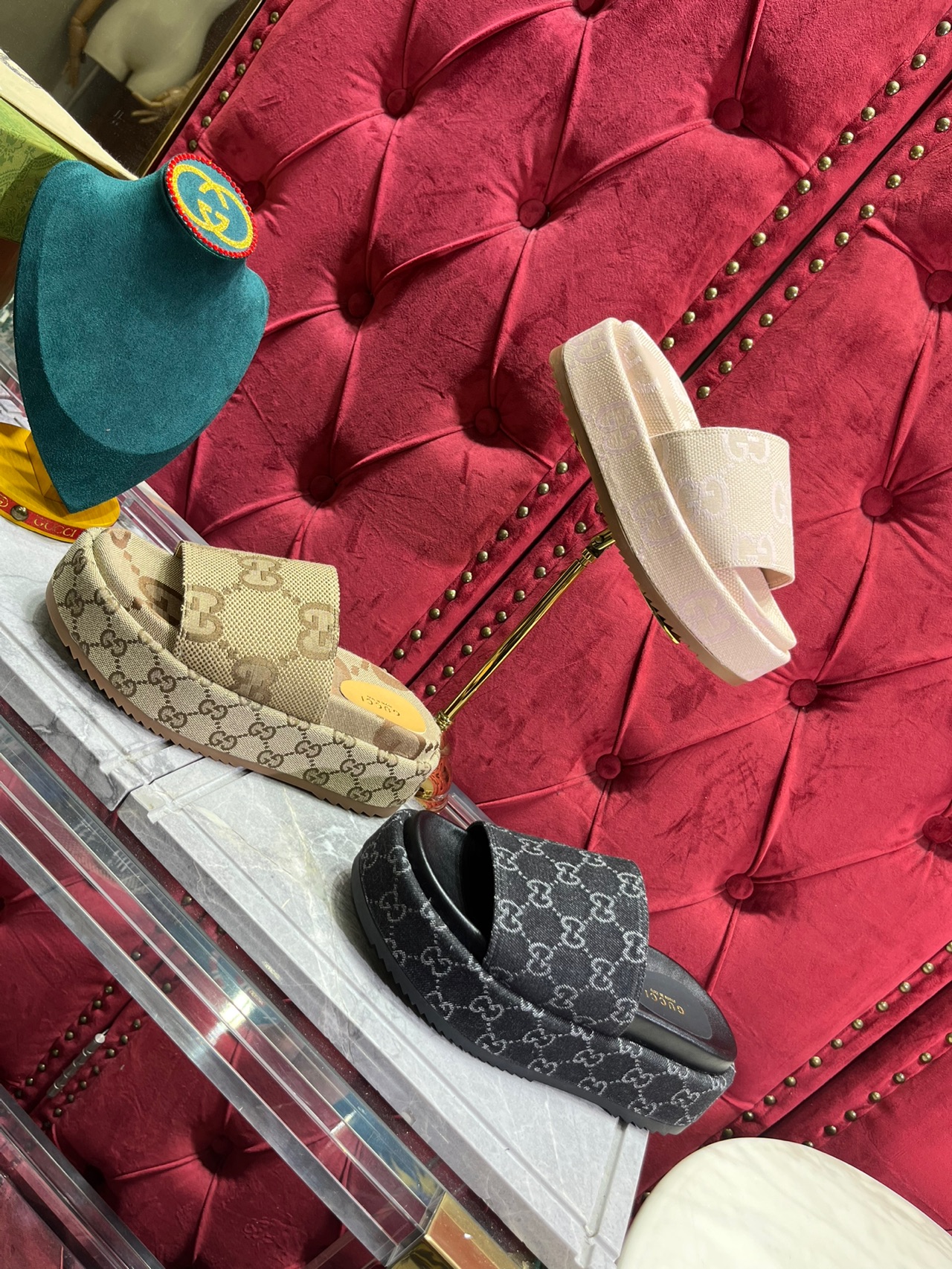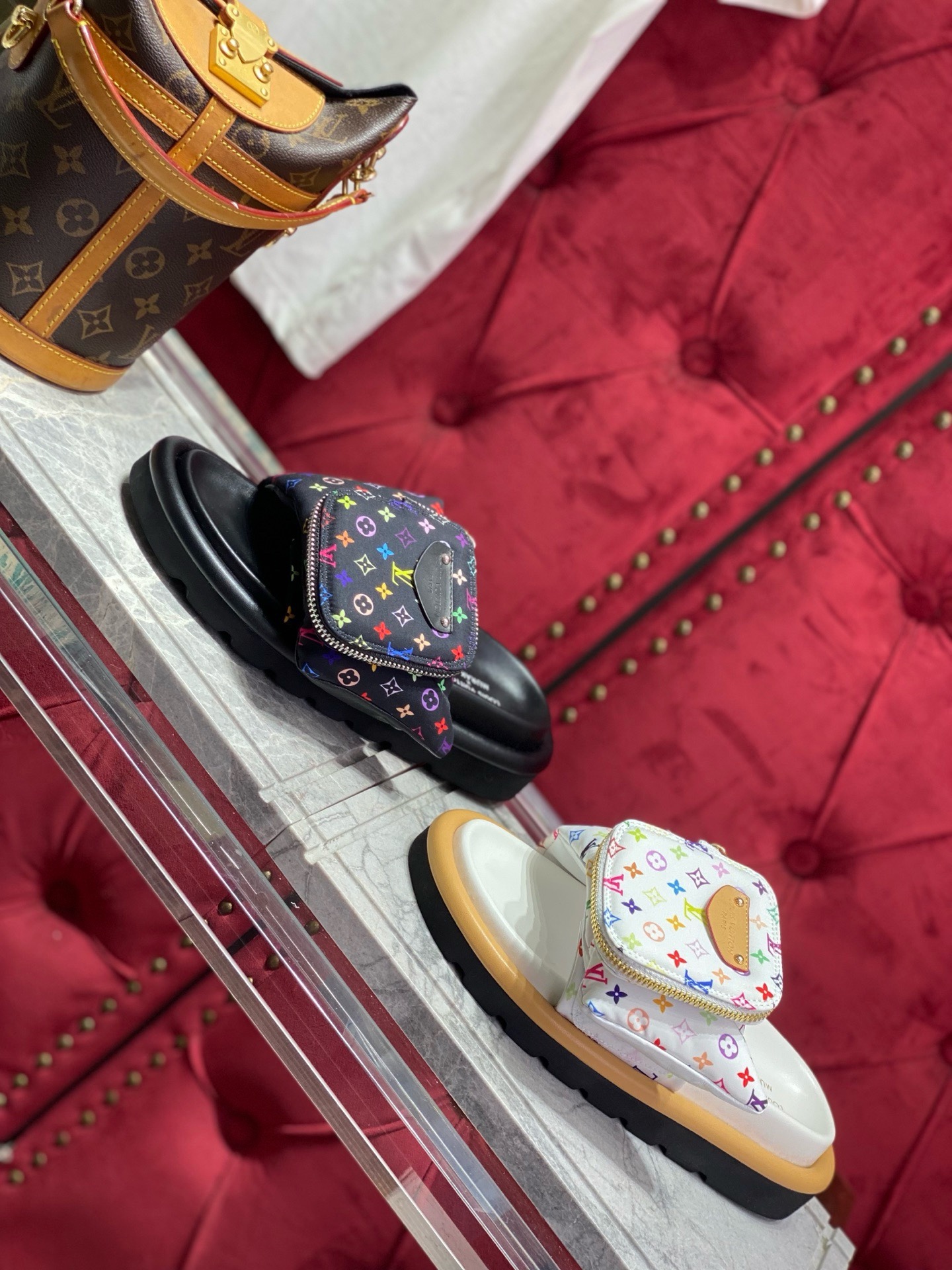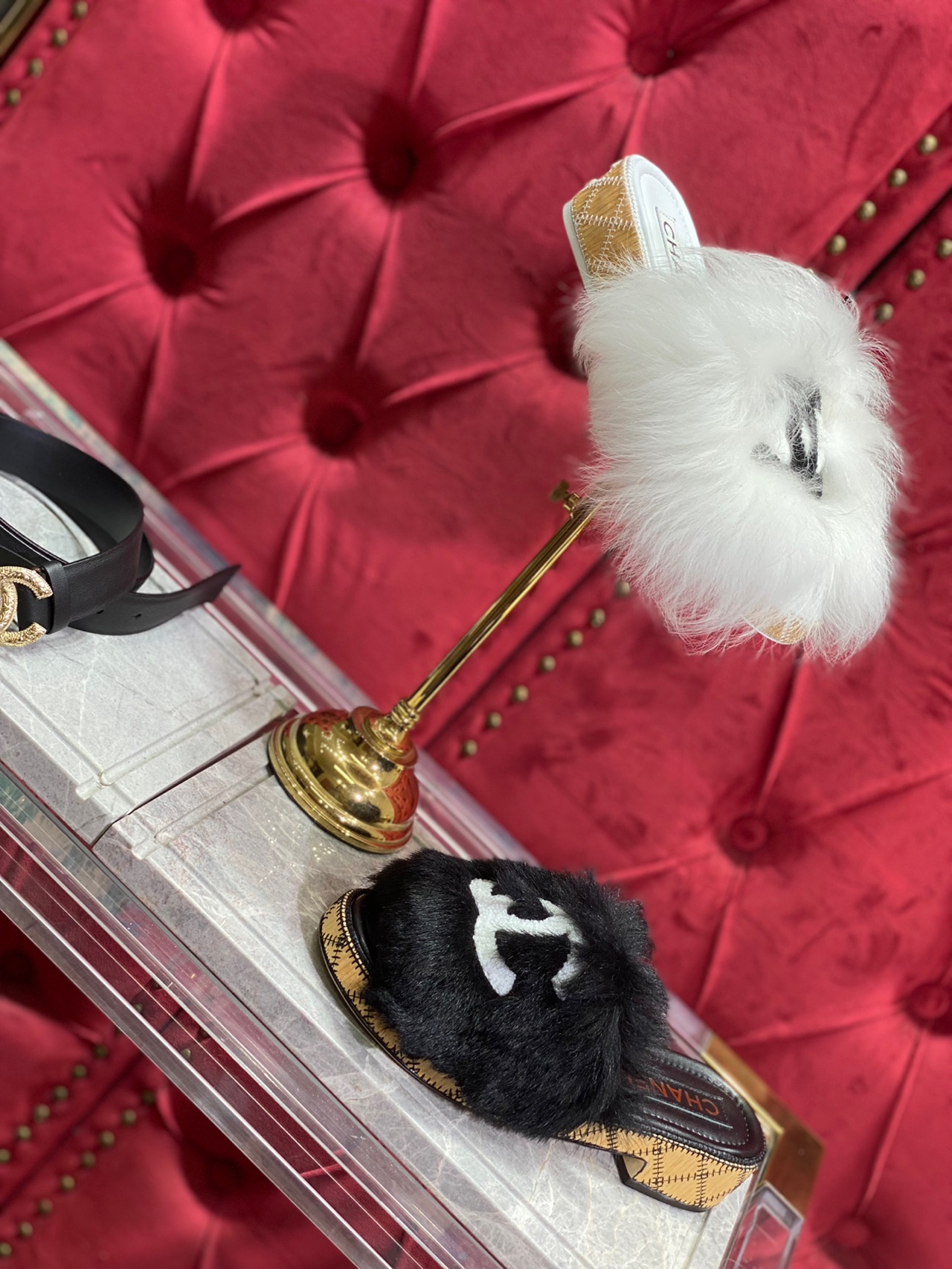 B经典百搭刺绣标增高厚底羊毛拖鞋