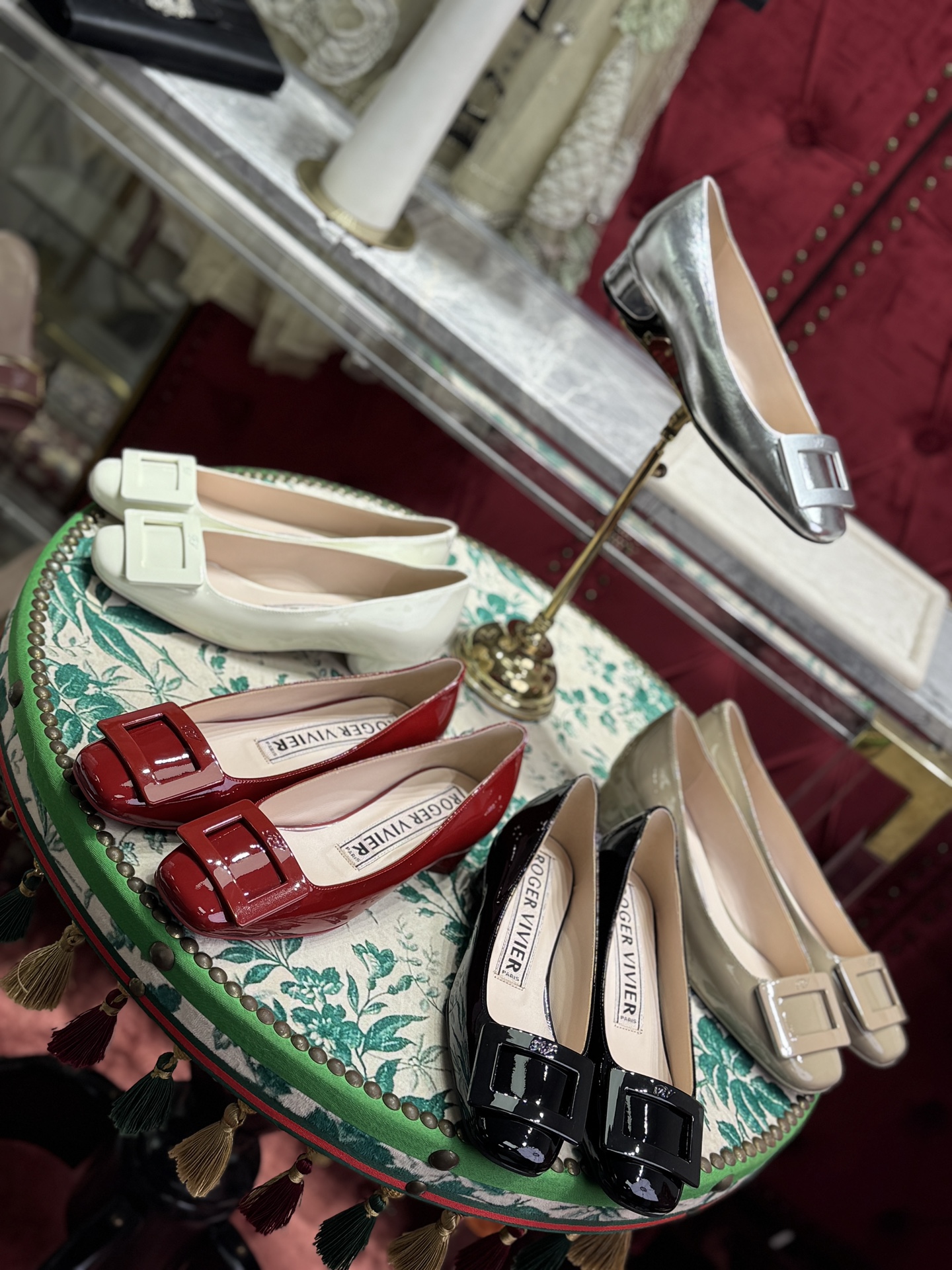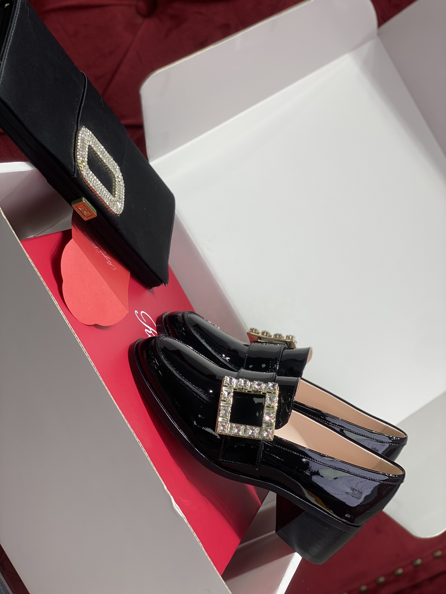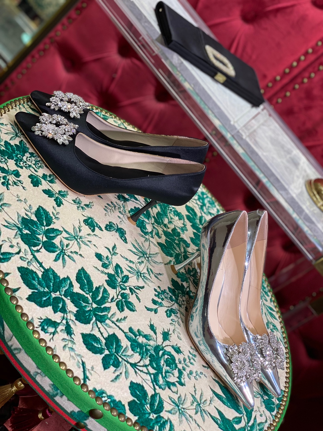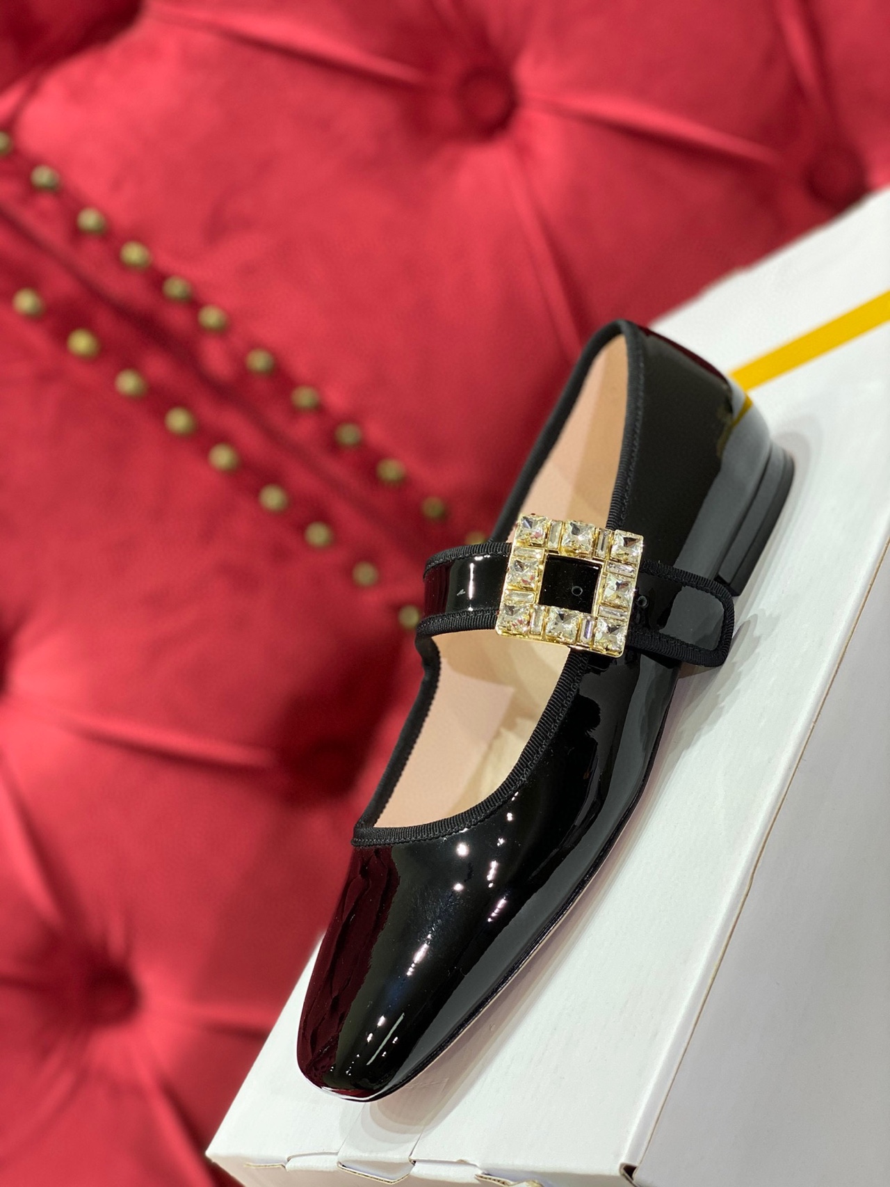 RV24限量款Belle Vivier天鵝絨钻扣瑪小方跟麗珍鞋