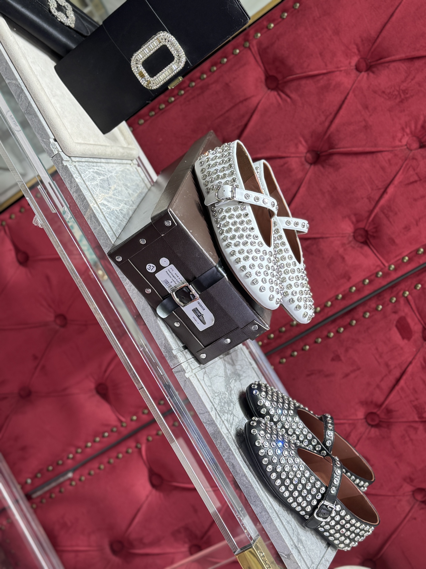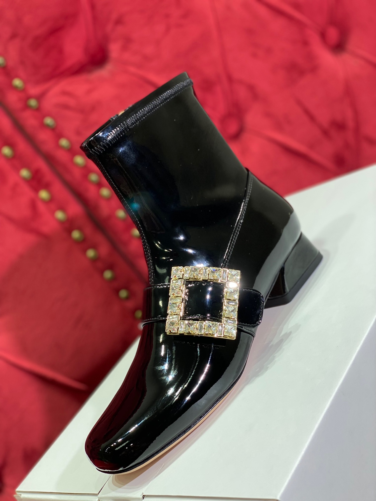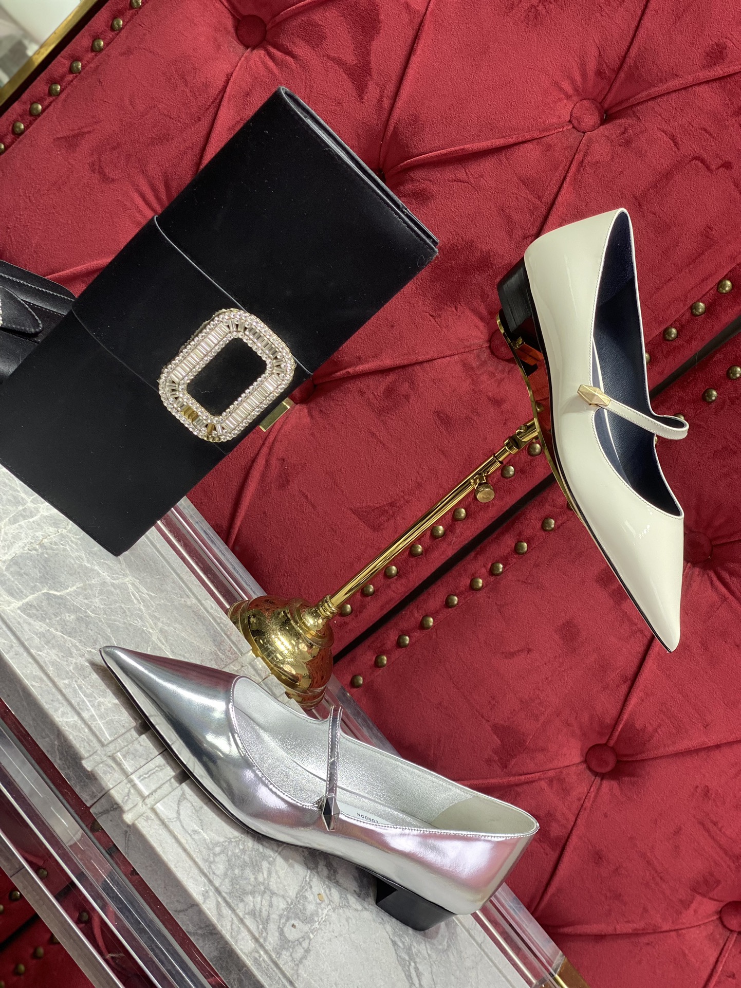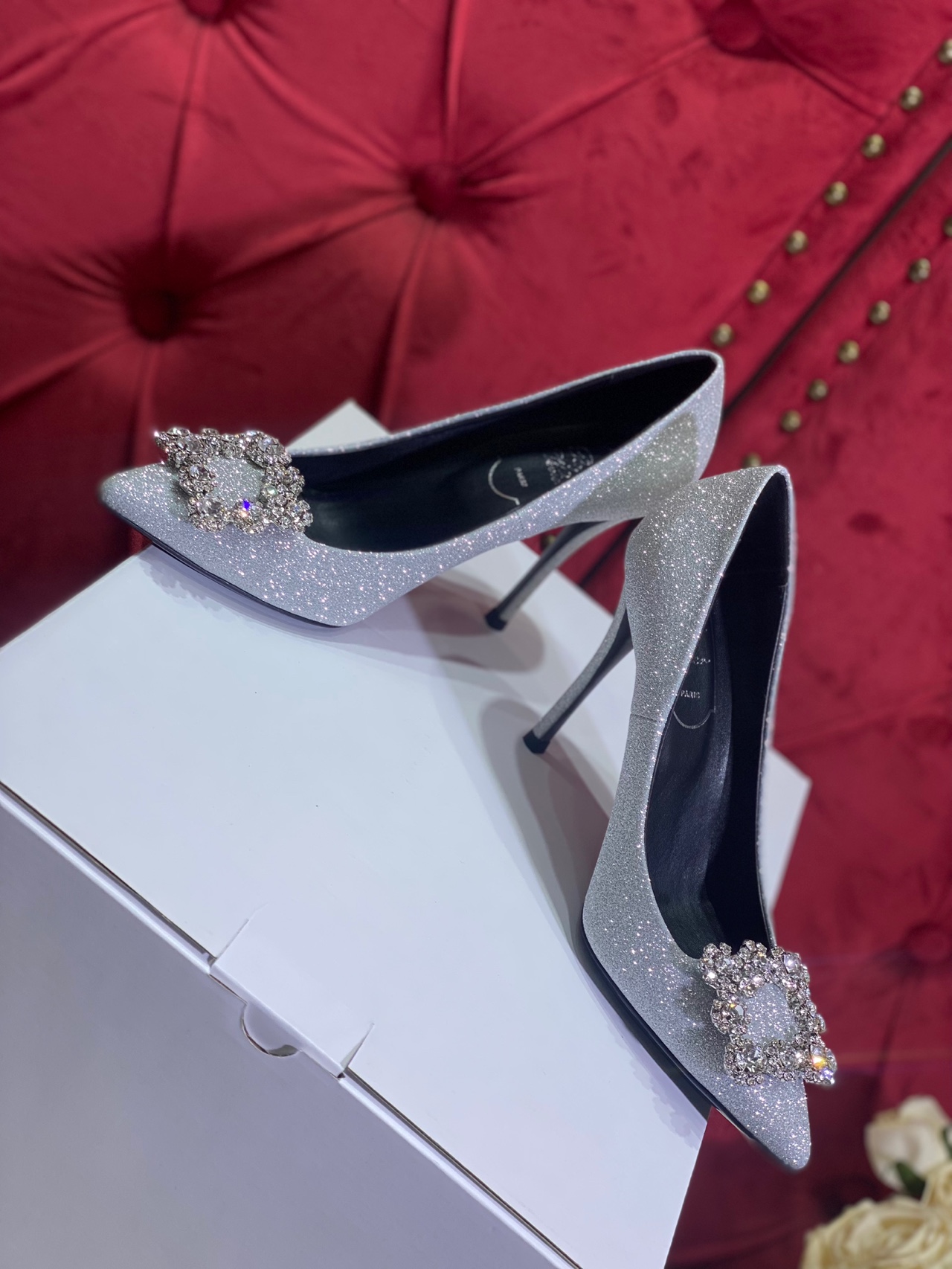 RV24限量款Belle Vivier天鵝絨钻扣瑪小方跟麗珍鞋