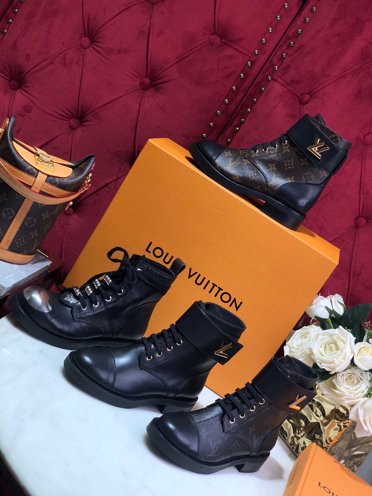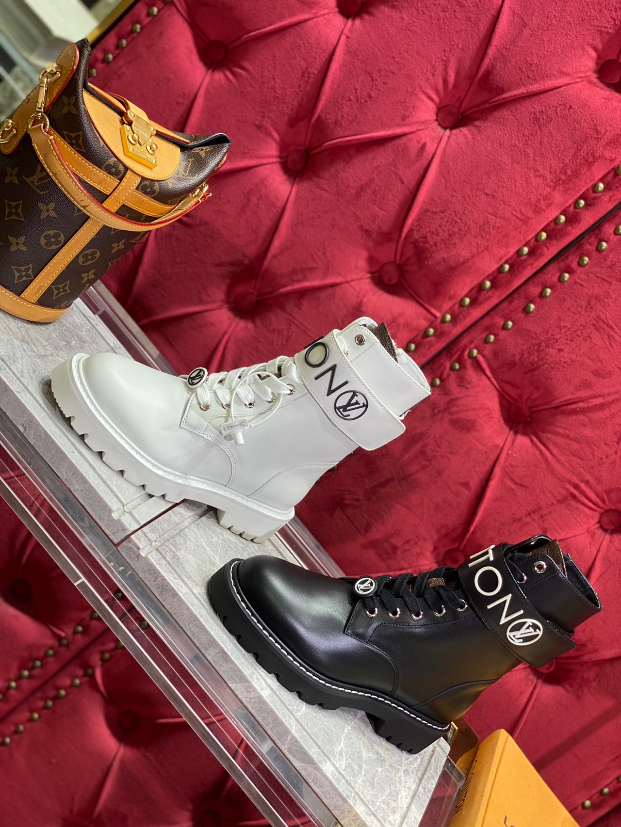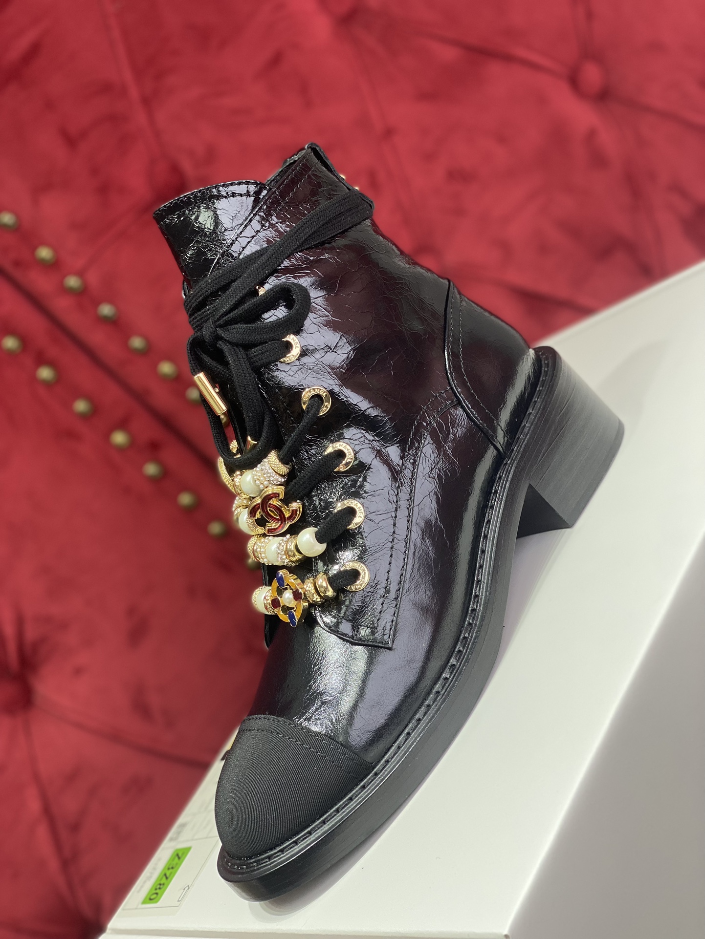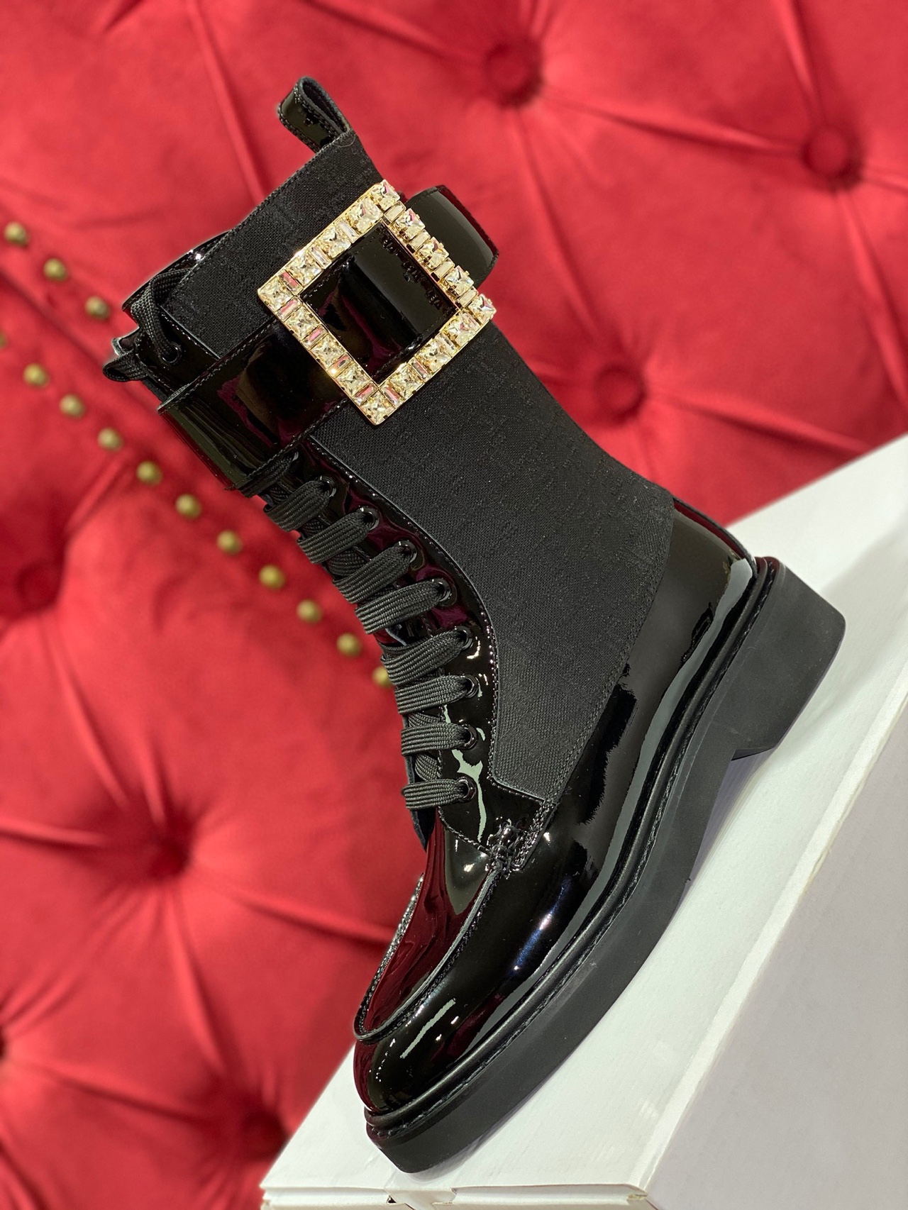 RV Viv' Rangers 钻扣提花面料拼漆皮马丁靴