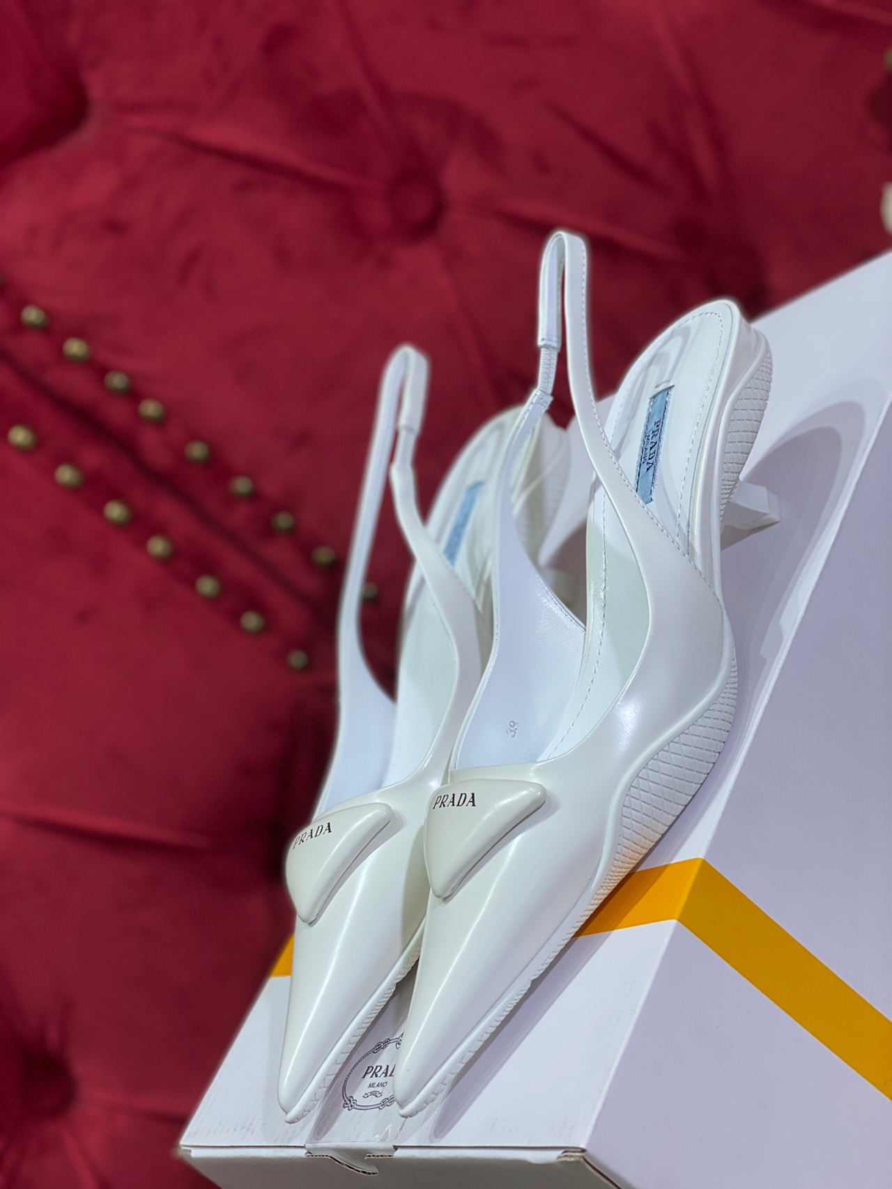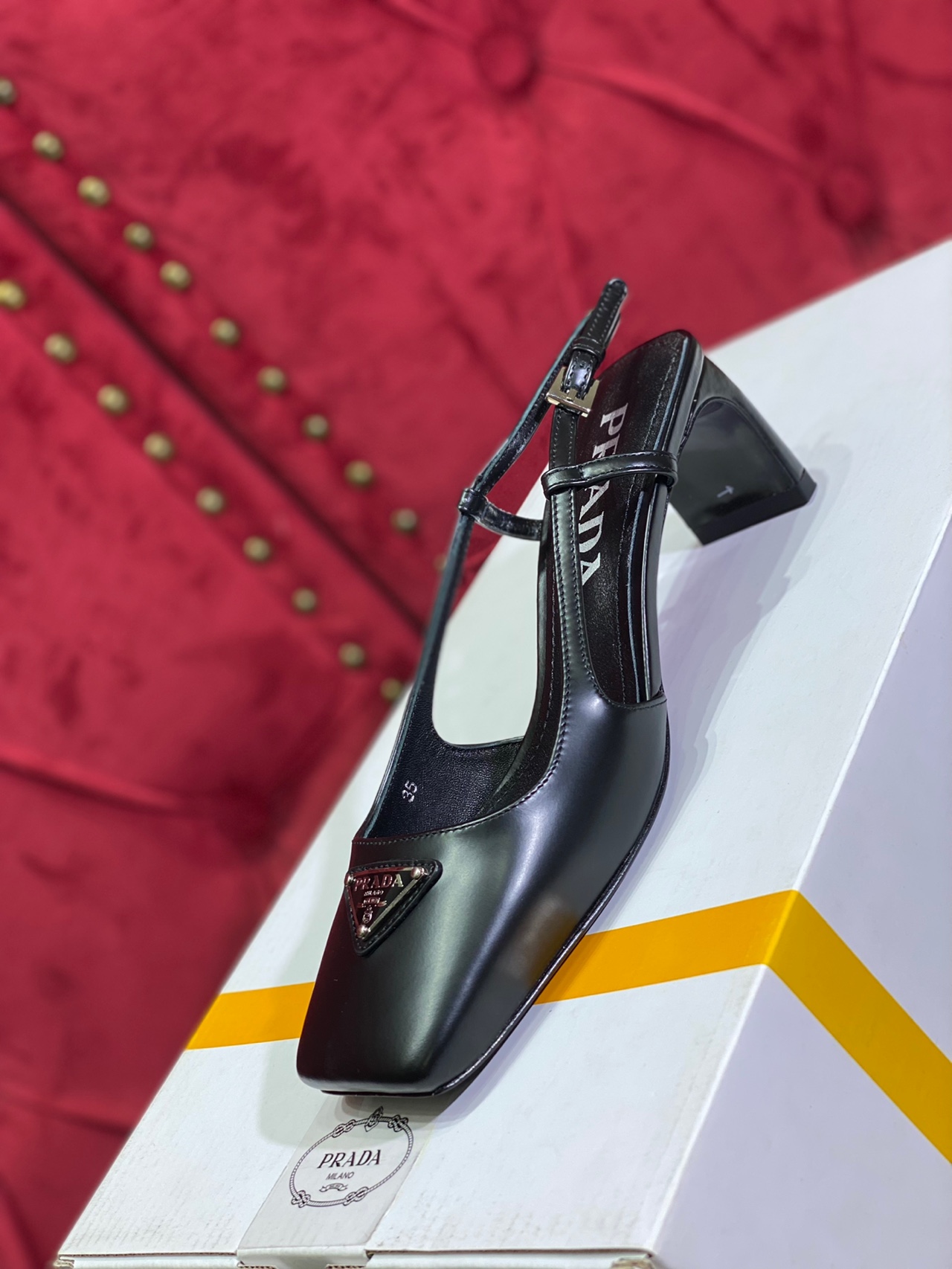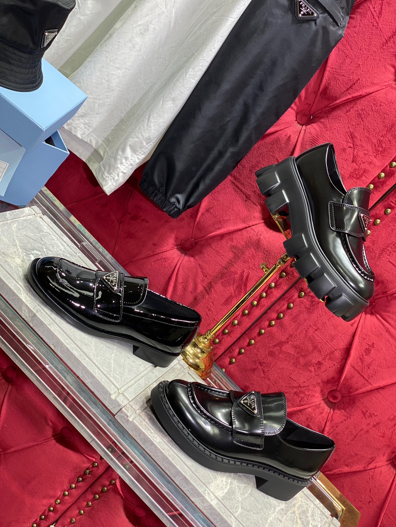 P 羊皮珐琅三角标粗跟玛丽珍单鞋