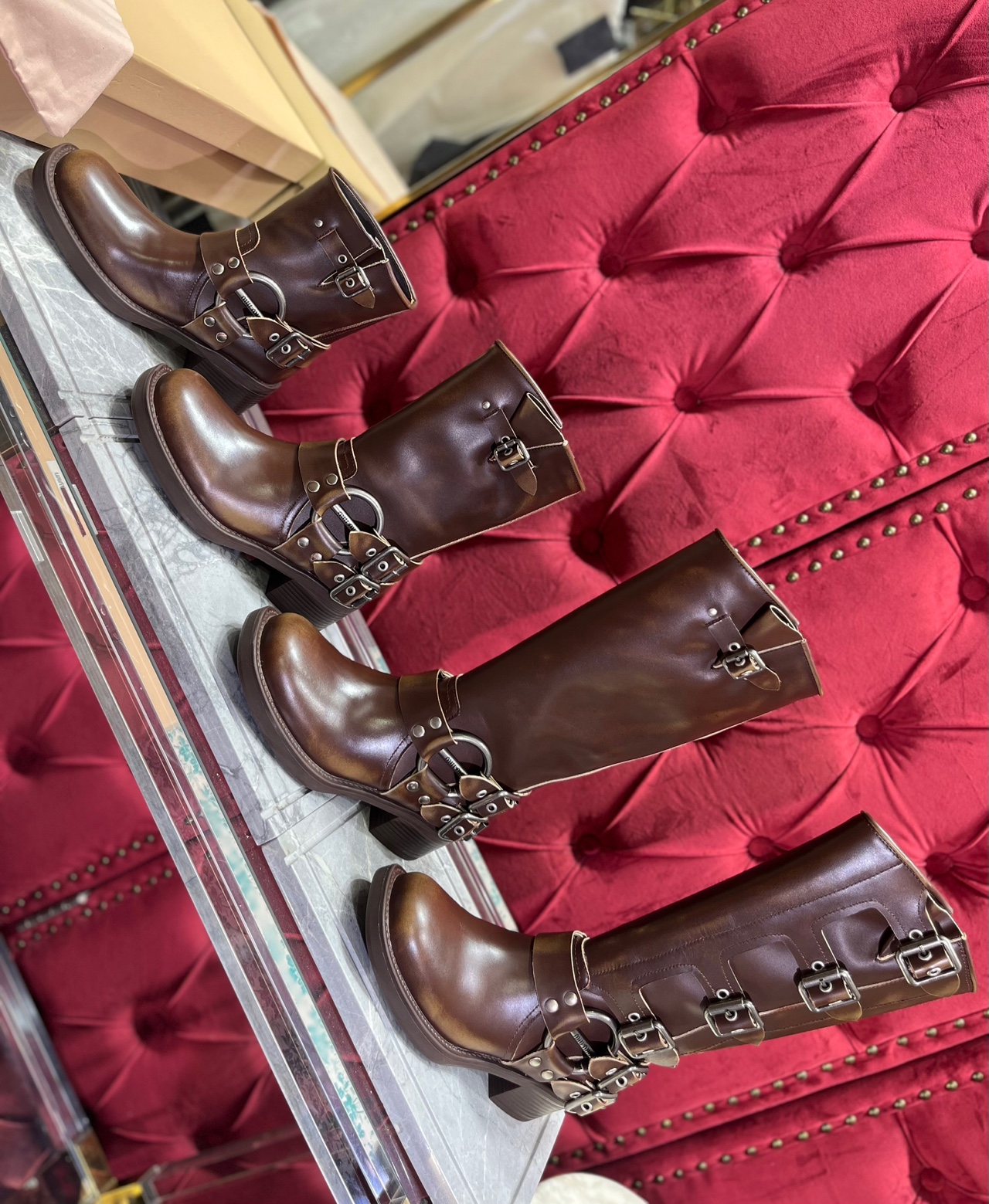 Burberry 经典英伦高级针扣皮带骑士靴长靴