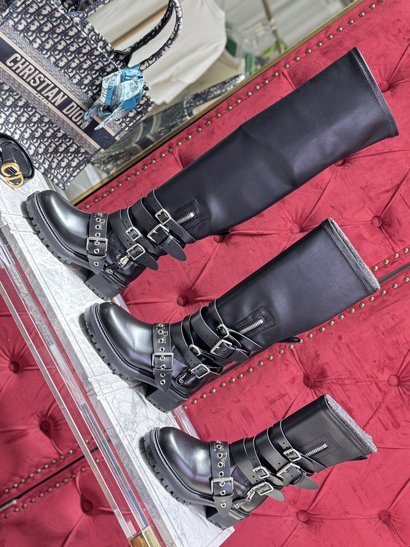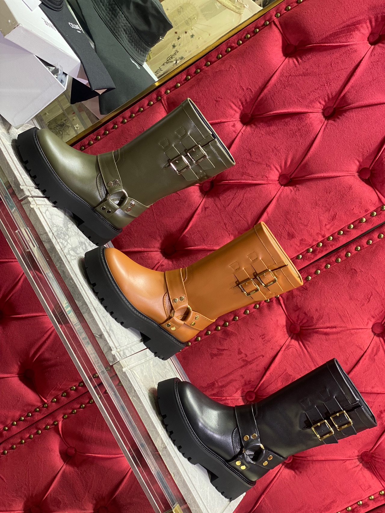 Celine经典酷帅调节靴口厚底骑士靴长靴