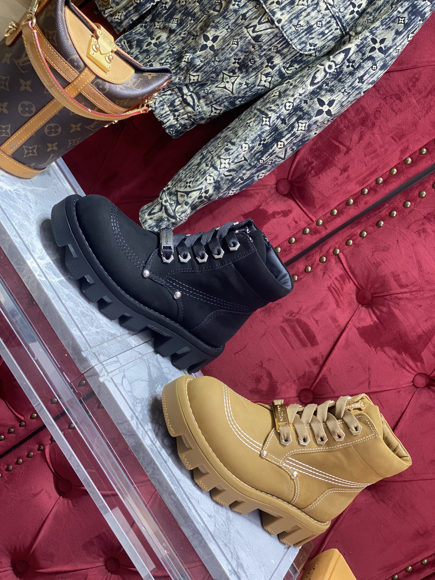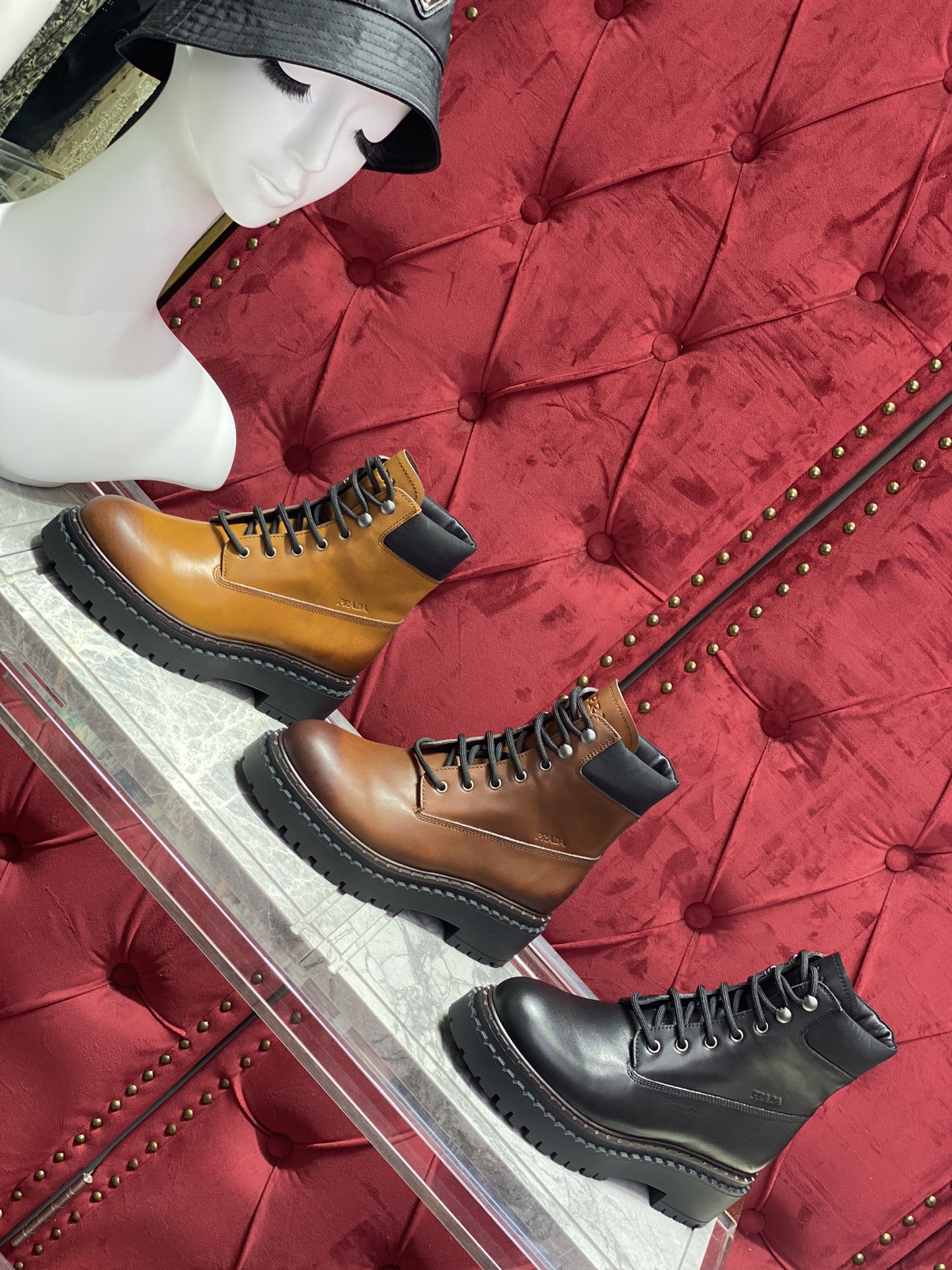 P 24FW经典百搭系带厚底马丁靴机车靴