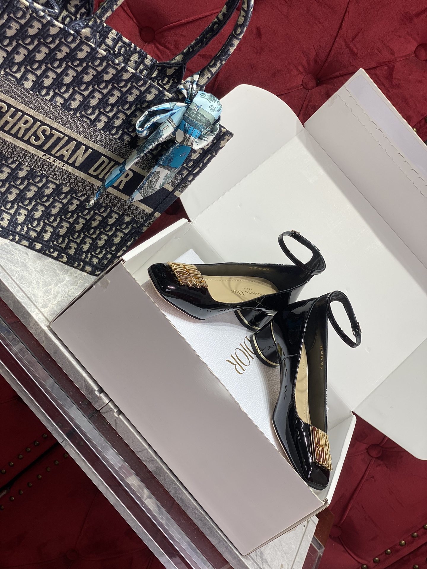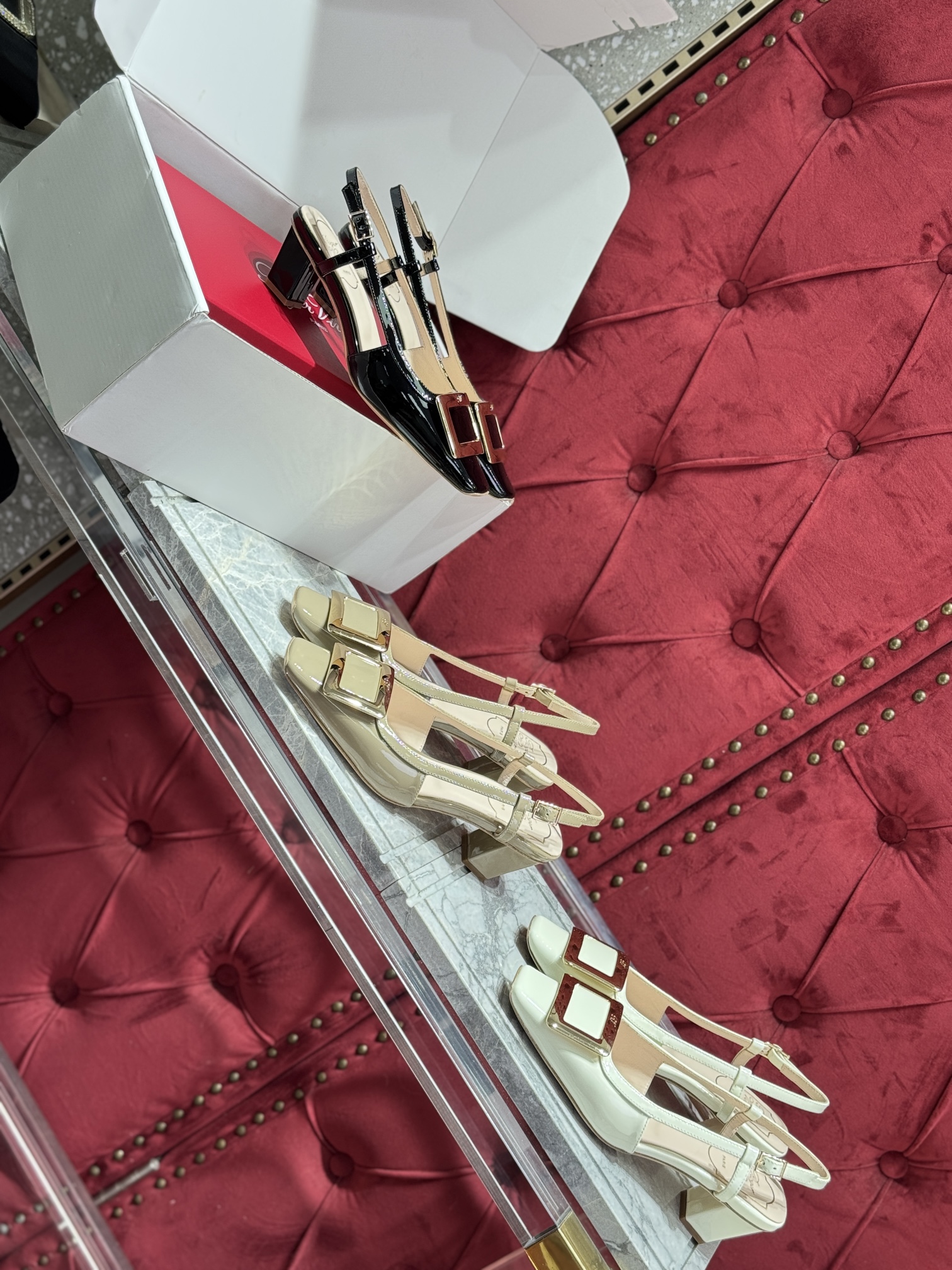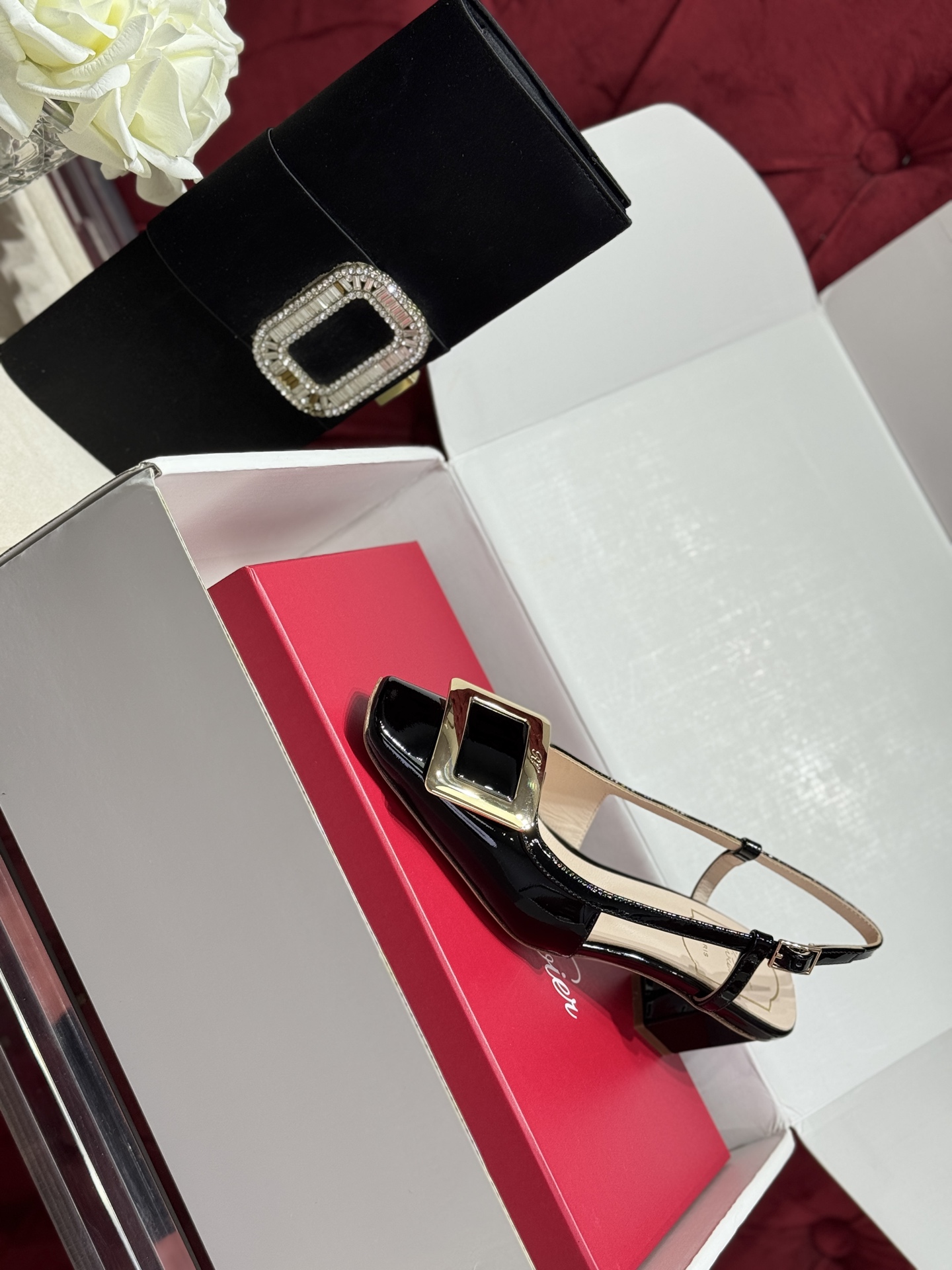 RV 经典Belle Vivier漆皮后袢带方扣中跟凉鞋