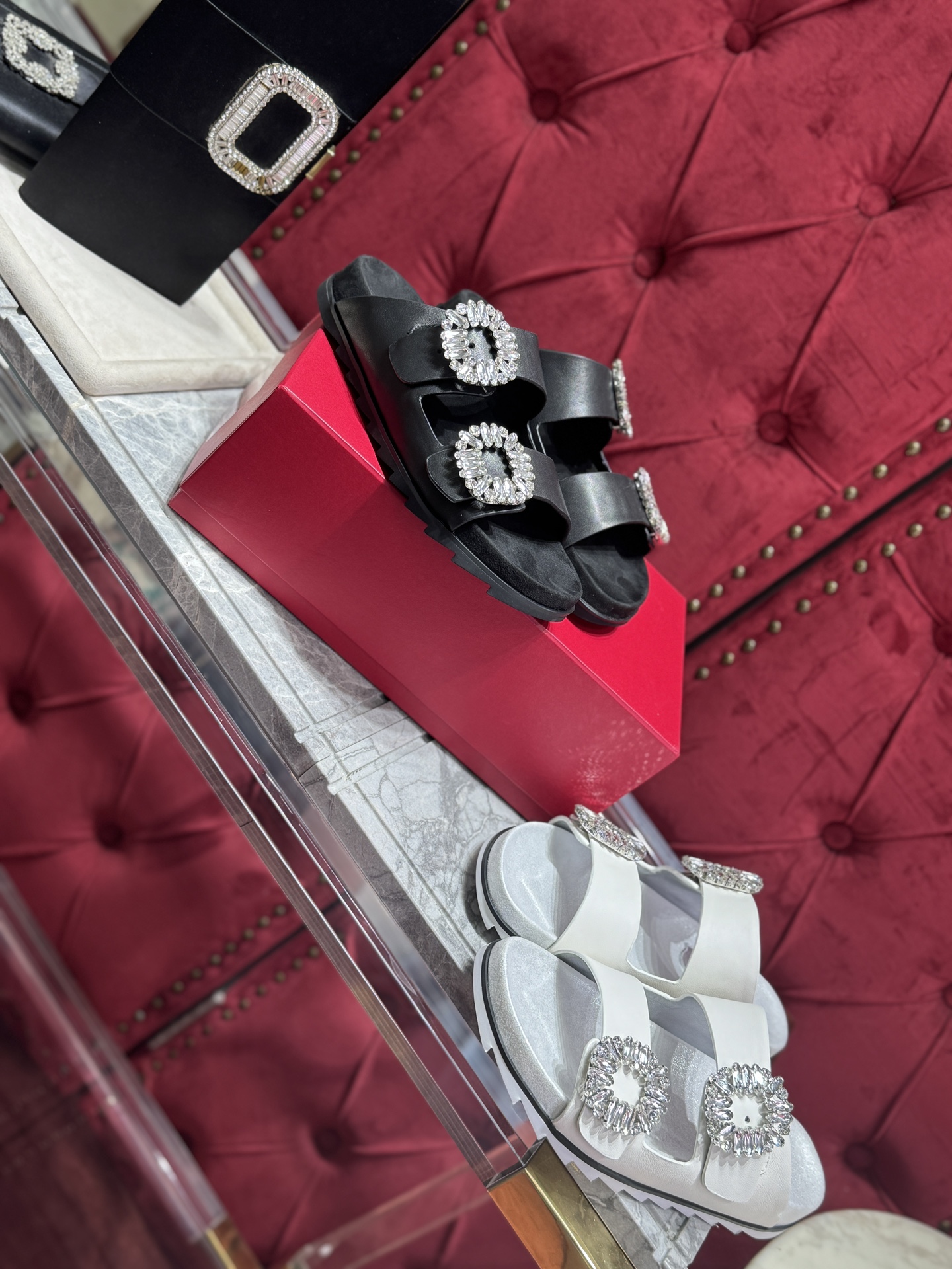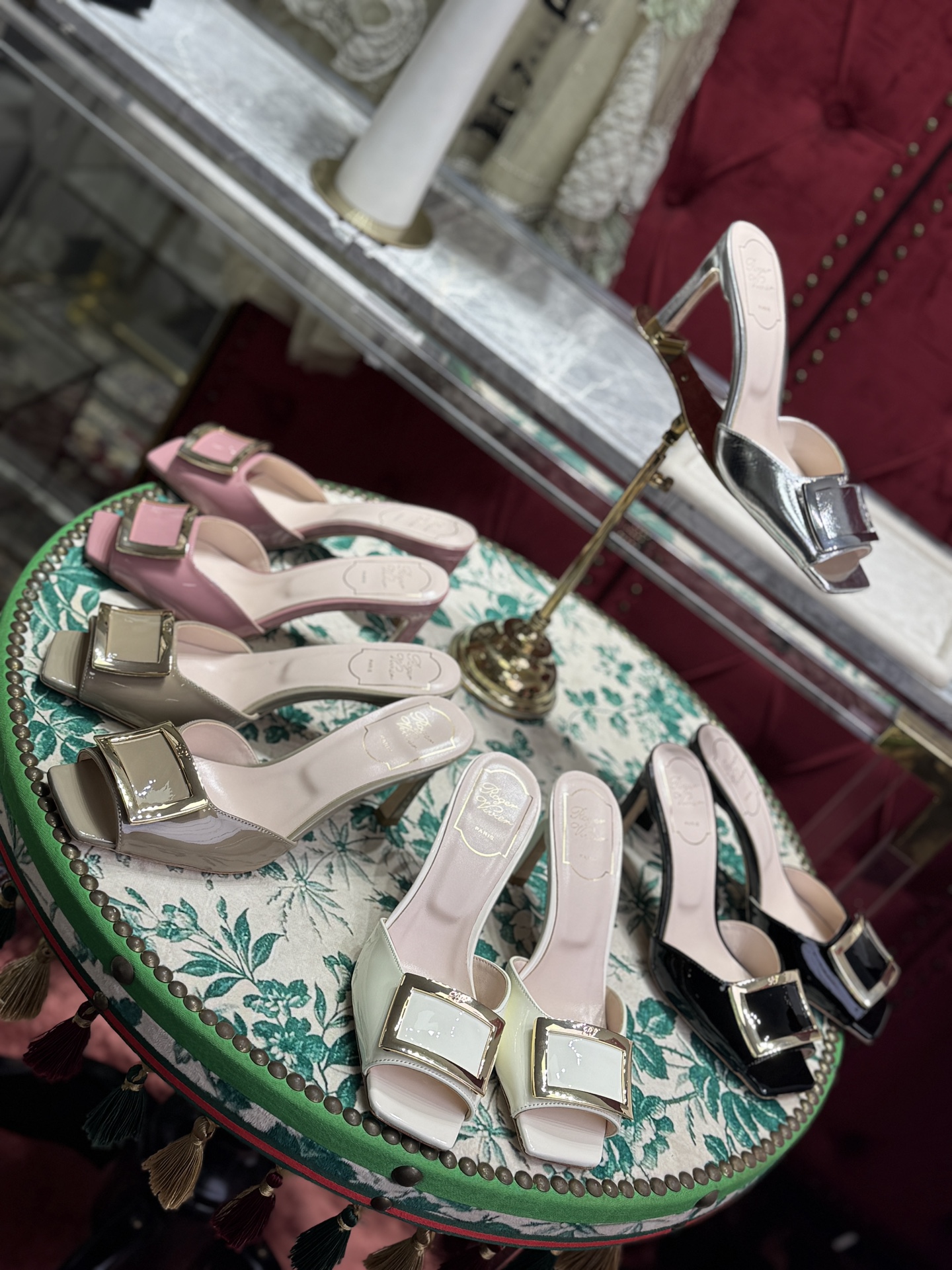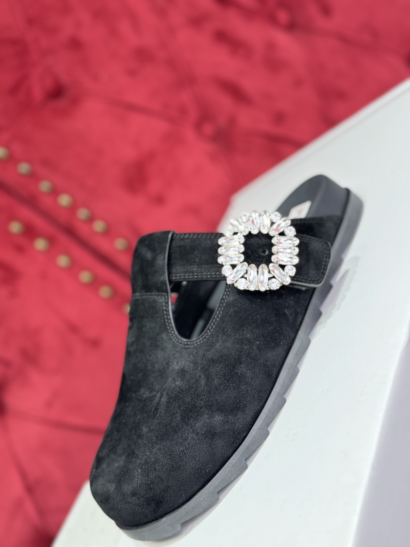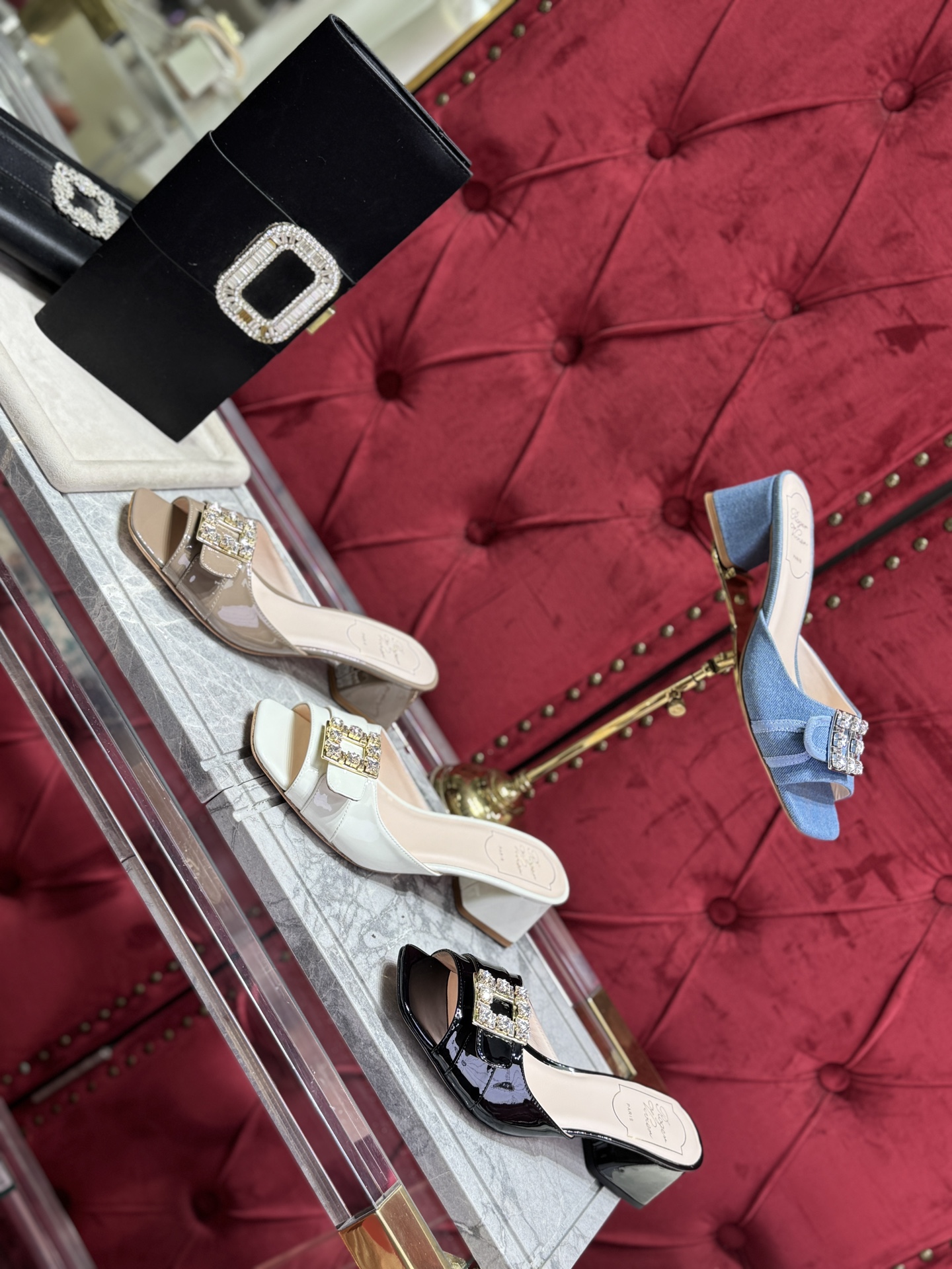 RV 经典Très Vivier钻扣中跟穆勒拖鞋