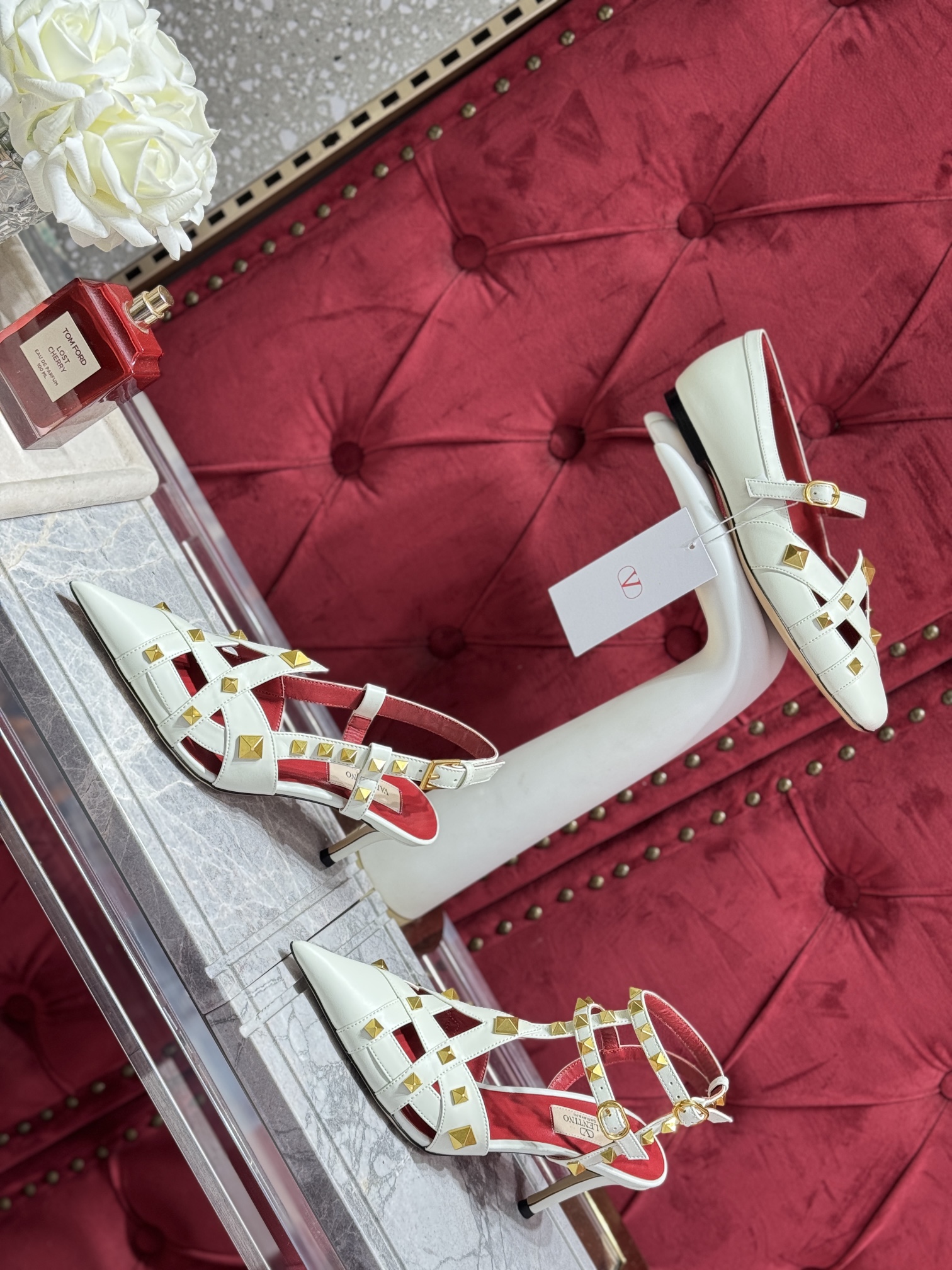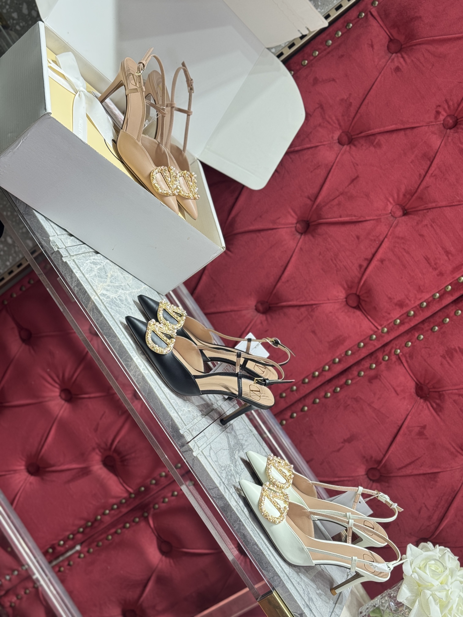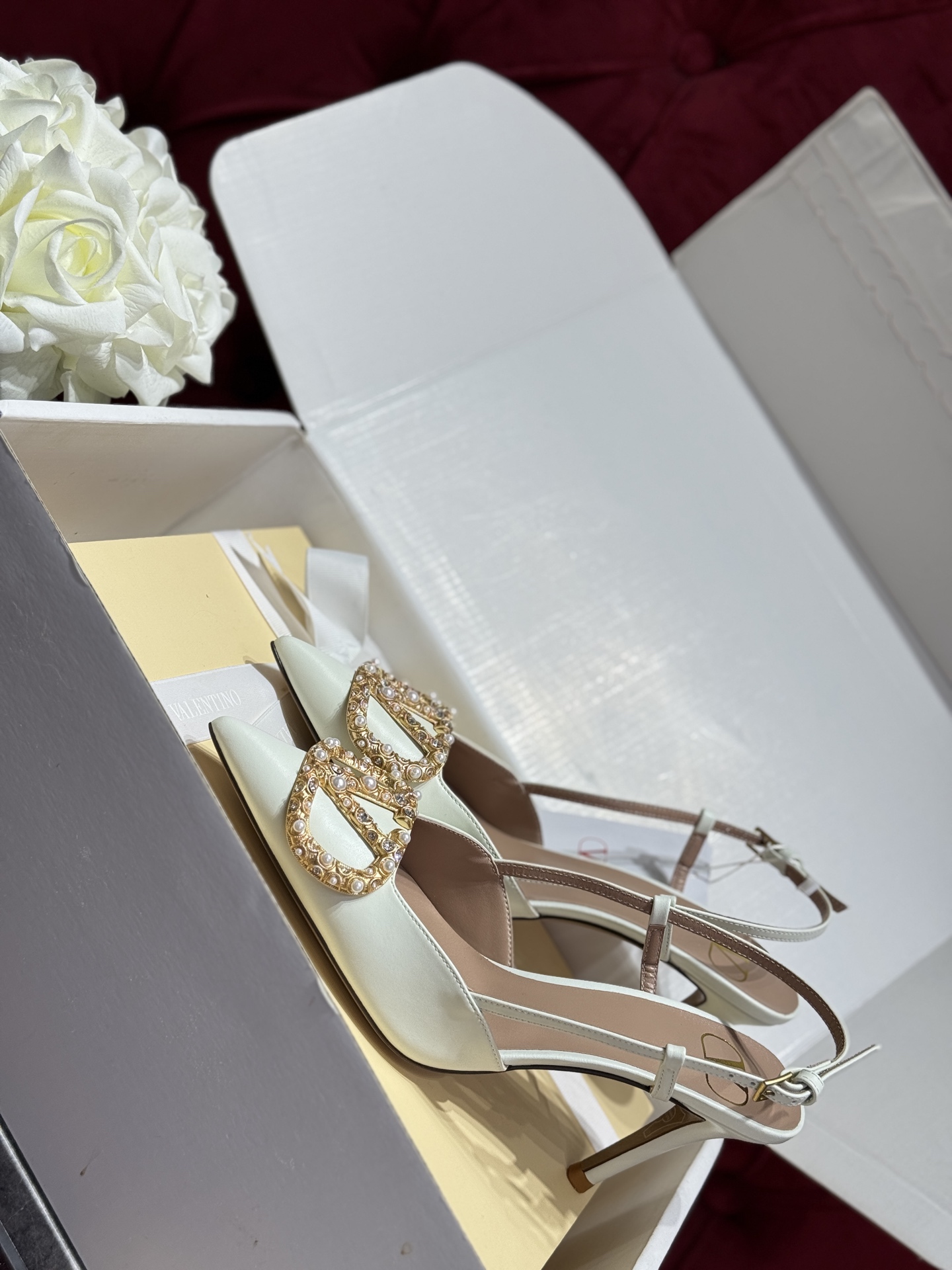 Valentino 经典优雅新款珍珠拼钻扣 Vlogo后空高跟鞋