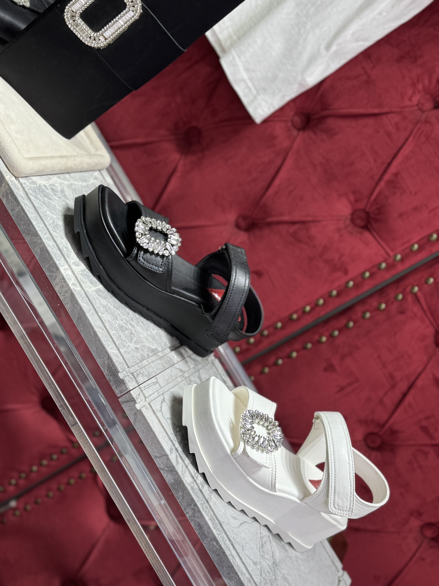 RV 经典法式优雅Tres Vivier 钻扣双带粗跟玛丽珍单鞋