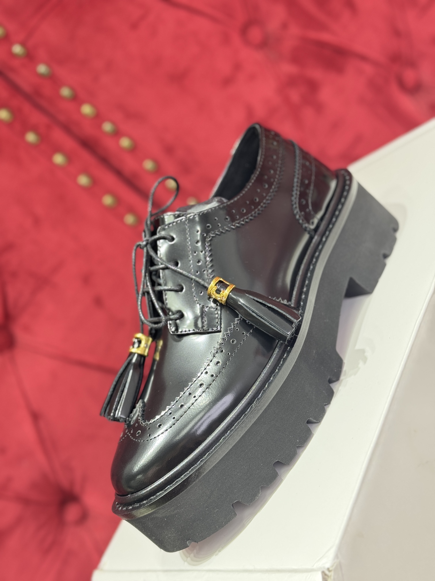 Celine英伦学院风巴洛克流苏吊饰绑带厚底德比鞋乐福鞋